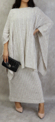 Ensemble robe et poncho grosse maille pour femme - Couleur Blanc cassé - REF. 31127 (38.00 €)