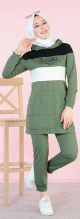 Survêtement tricolore à capuche imprimé "Breathe" (Hijab Sport-Wear) - Couleur Kaki, noir et blanc - REF. 32298 (29.90 €)