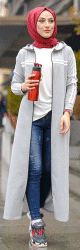 Veste longue zippée style sportswear (Robe Sport pour femme voilée) - Couleur gris clair - REF. 33290 (24.90 €)