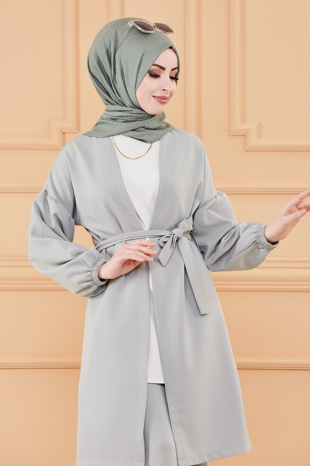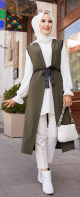 Gilet long sans manches pour femme avec ceinture noire (Mode islamique) - Couleur kaki - REF. 33979 (18.00 €)
