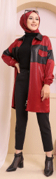 Veste zippée en skaï simili-cuir pour femme (Prêt-à-porter Hijab Automne Hiver Style) - Couleur bordeaux - REF. 35317 (25.00 €)