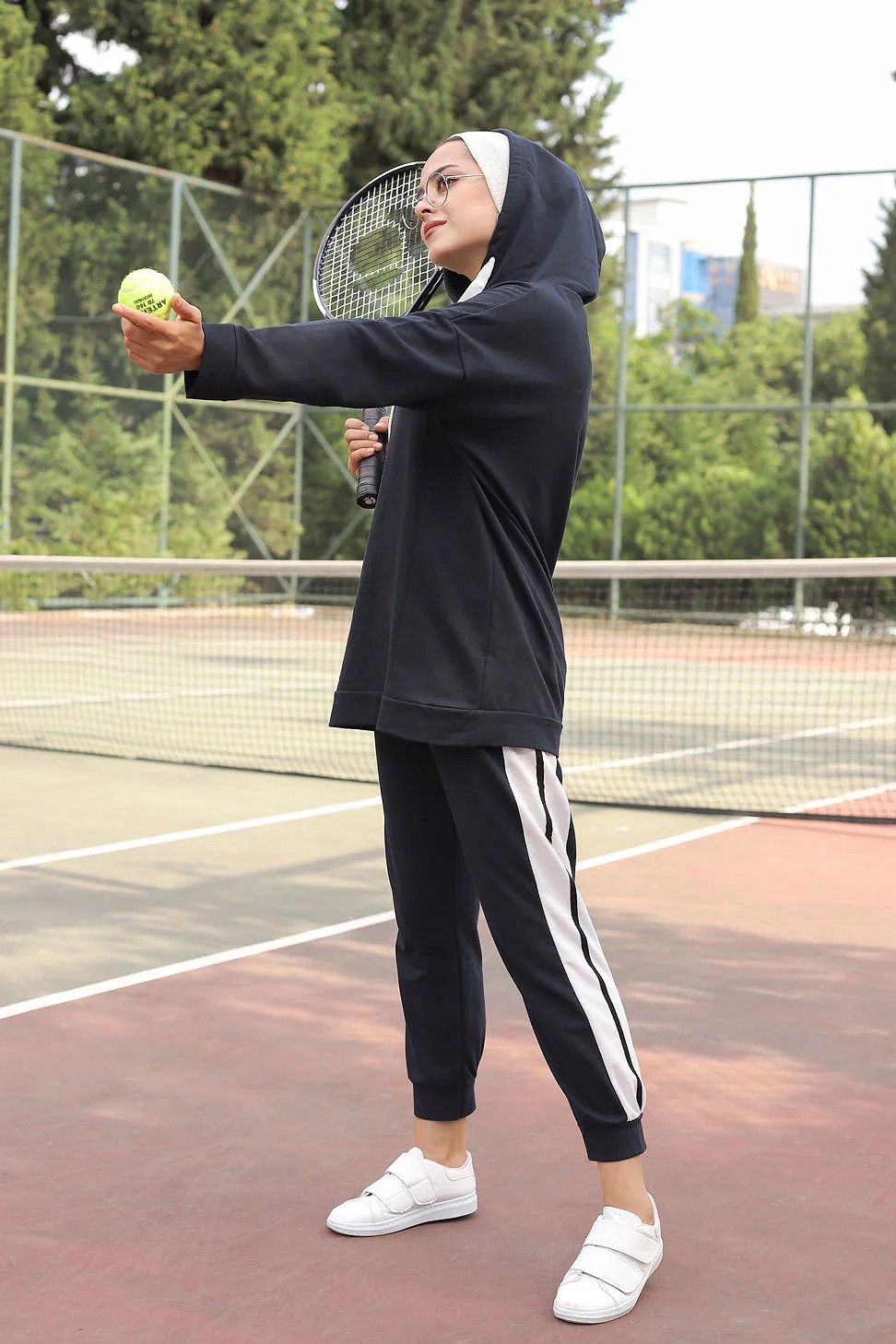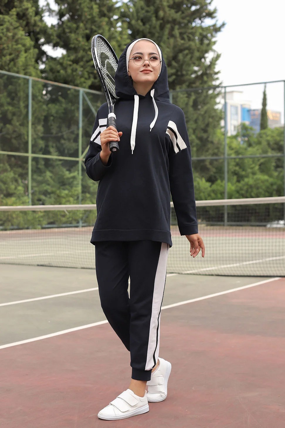 Ensemble décontracté et Survêtement de sport 2 pièces pour femme (Mode Musulmane) - Couleur Bleu marine et blanc - REF. 32200 (25.00 €) - En Promotion à 20.90 €