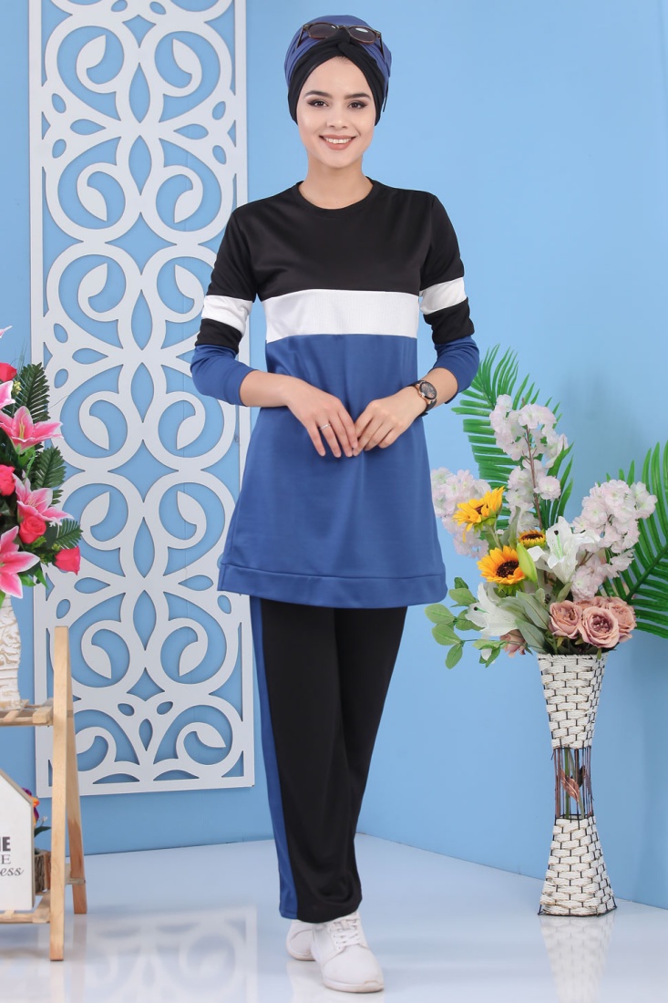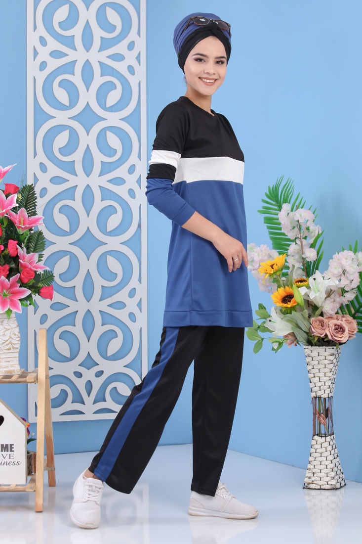 Ensemble survêtement 2 pièces décontracté (Hijab Sport femme musulmane) - Couleur bleu marine - REF. 32290 (29.90 €)