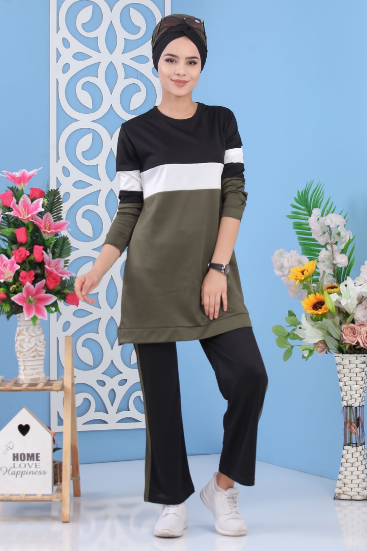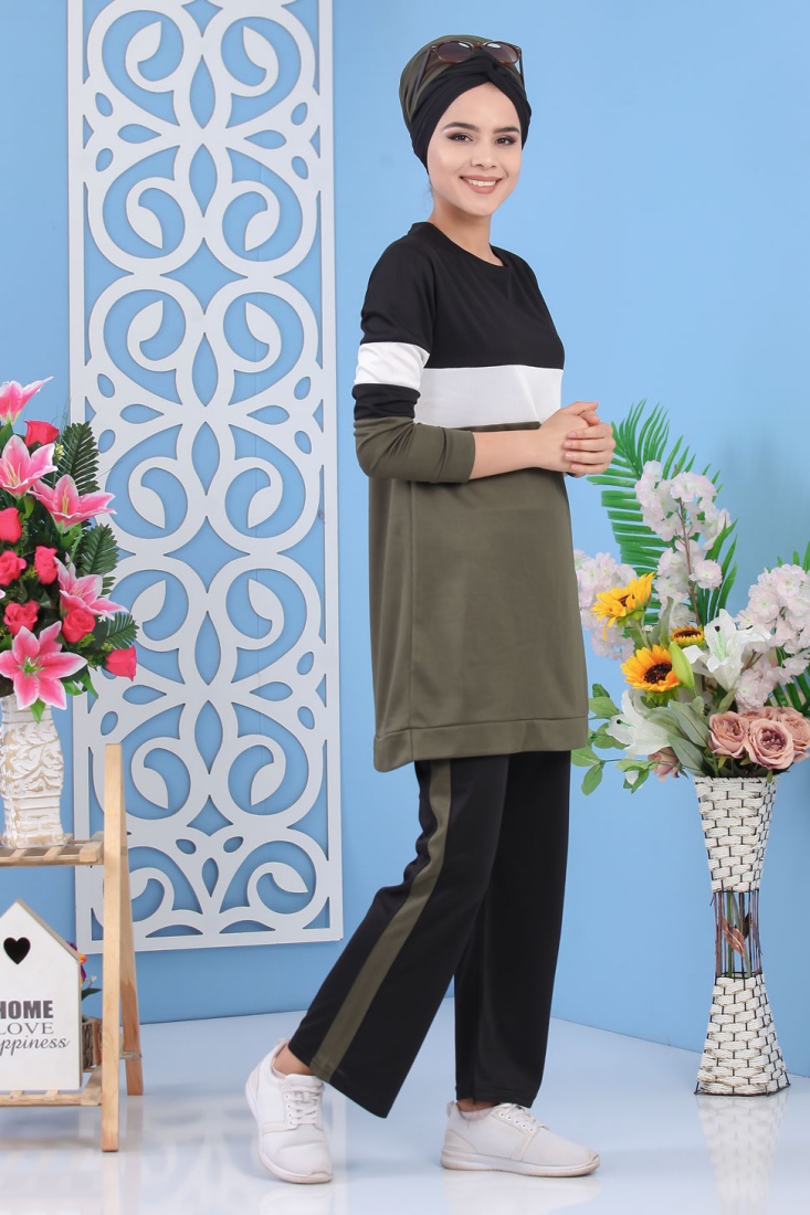 Ensemble tunique et panatalon casual décontracté mode sportswear (Hijab Mode Musulmane) - Couleur vert - REF. 32229 (25.00 €) - En Promotion à 22.90 €