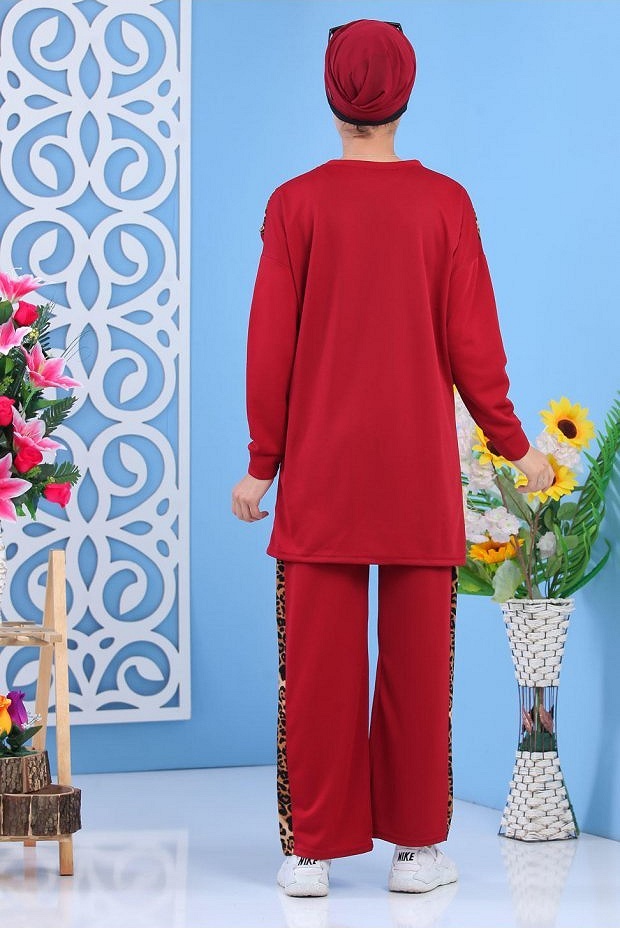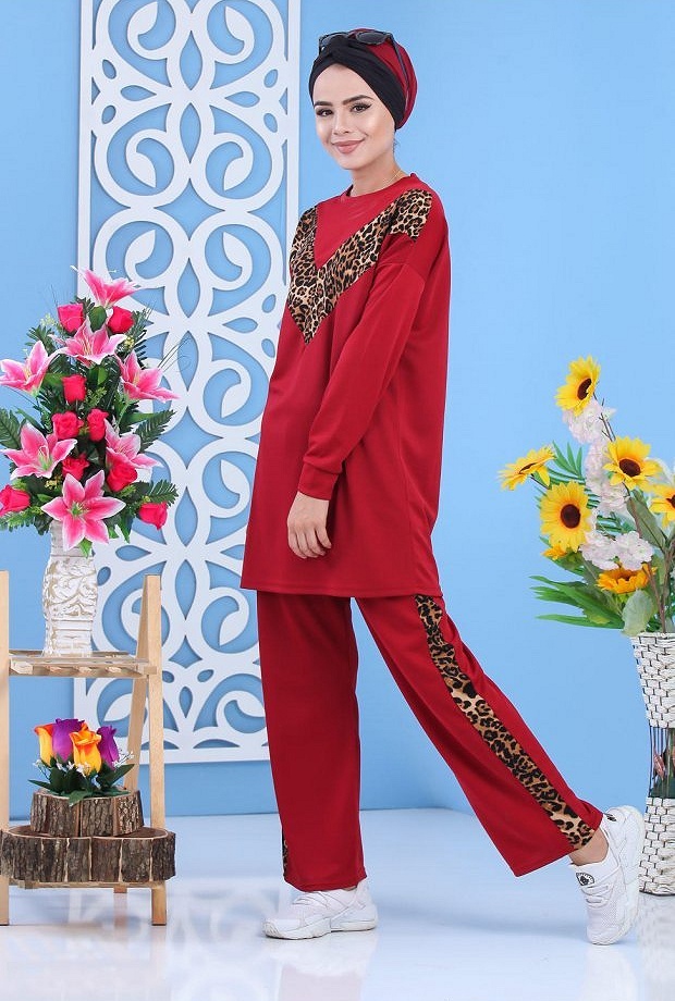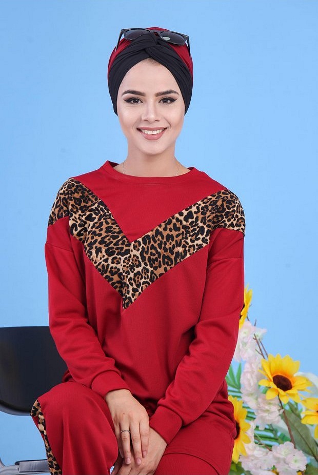 Ensemble survêtement 2 pièces léopard - Couleur bordeaux (Vêtement Sport Mastour pour Femme) Vetement & Accessoire