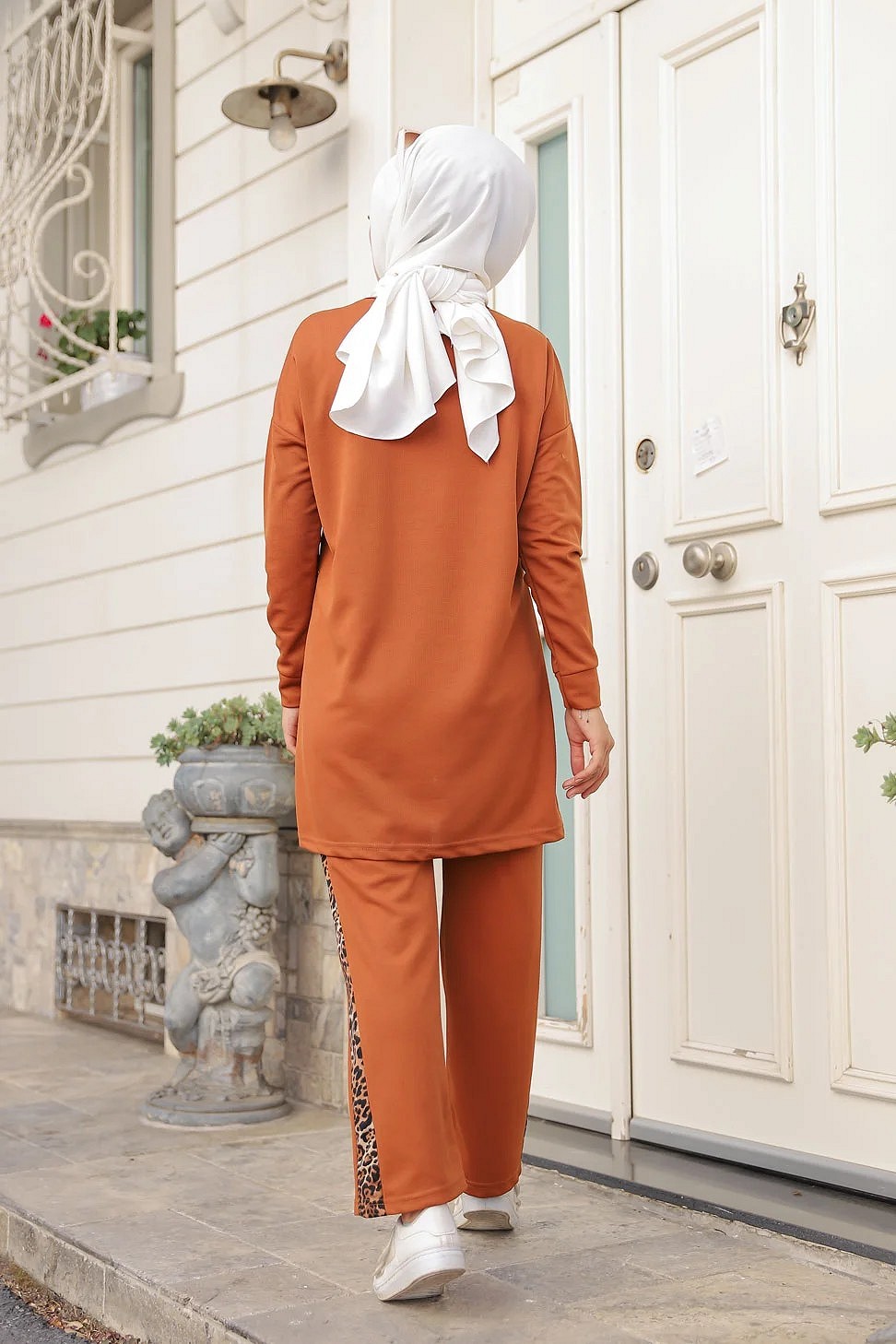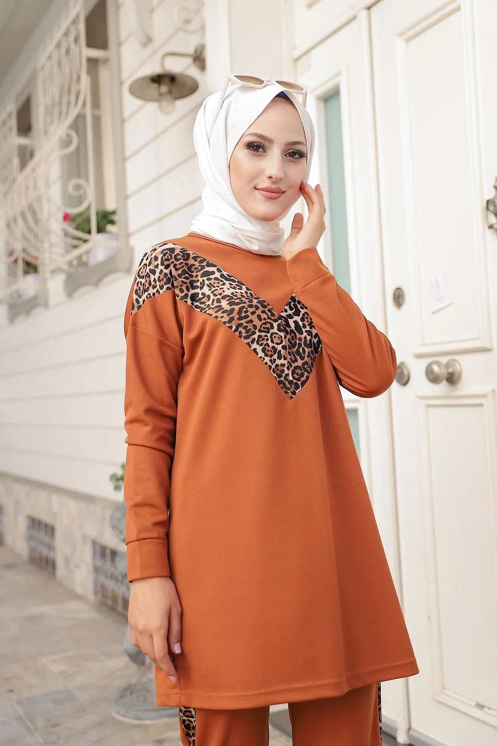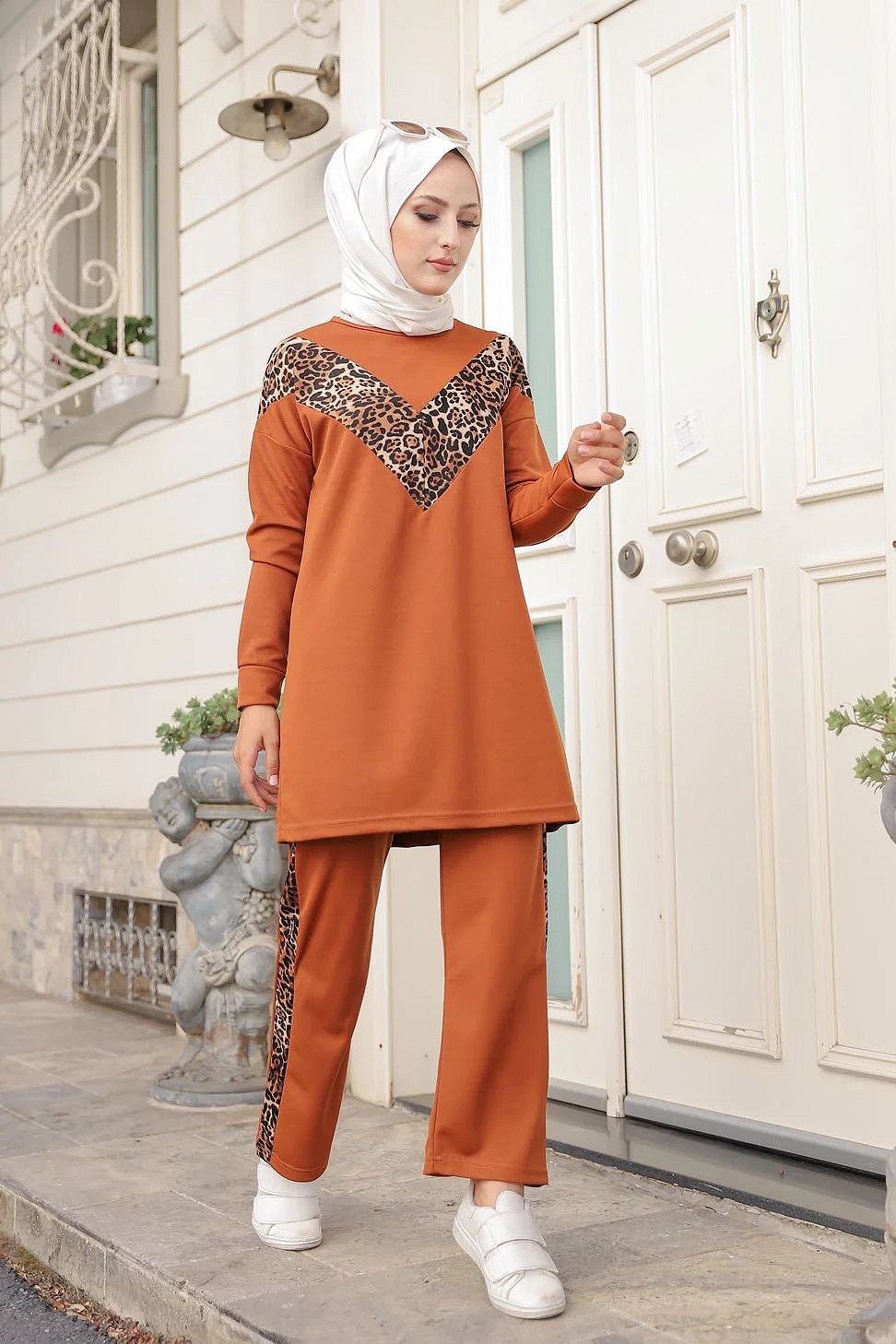 Ensemble survêtement 2 pièces léopard (Vêtement Sport Mastour pour Femme) - Couleur rouille Vetement & Accessoire