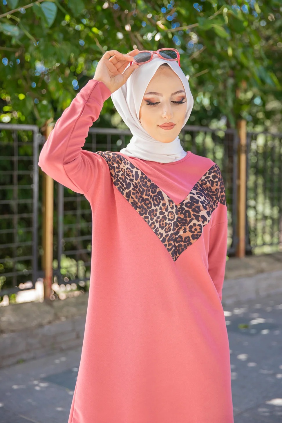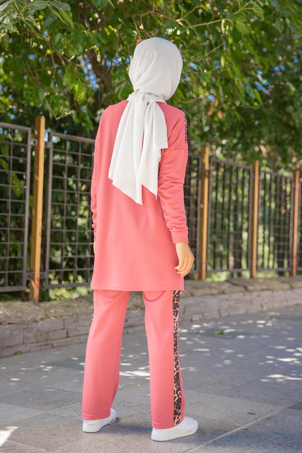 Ensemble survêtement 2 pièces léopard - Vêtement Sport pour femme musulmane voilée - Couleur rose Vetement & Accessoire