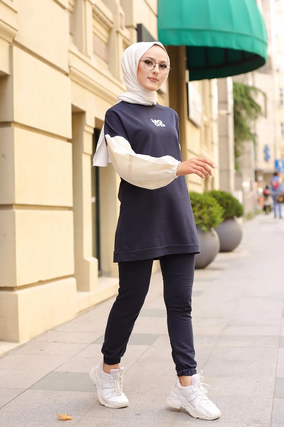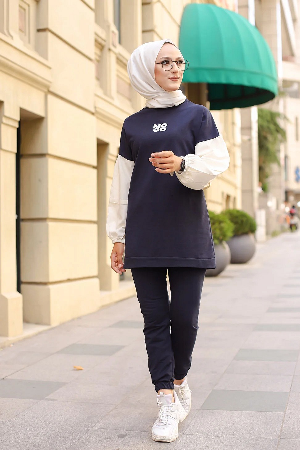 Ensemble survêtement avec sweat-shirt et jogger (Vêtement sport femme voilée) - Couleur Bleu marine Vetement & Accessoire