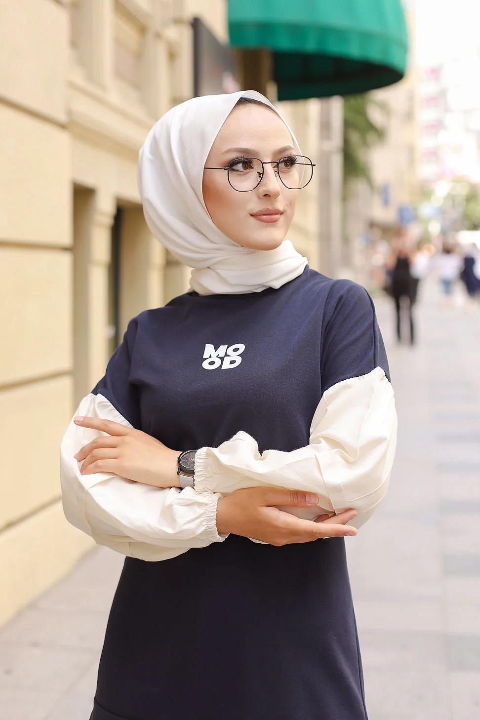 Robe moderne décontractée à capuche pour femme (Modest Fashion) - Couleur noir blanc et kaki - REF. 32965 (24.90 €) - En Promotion à 17.90 €