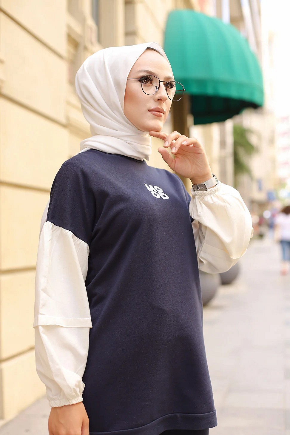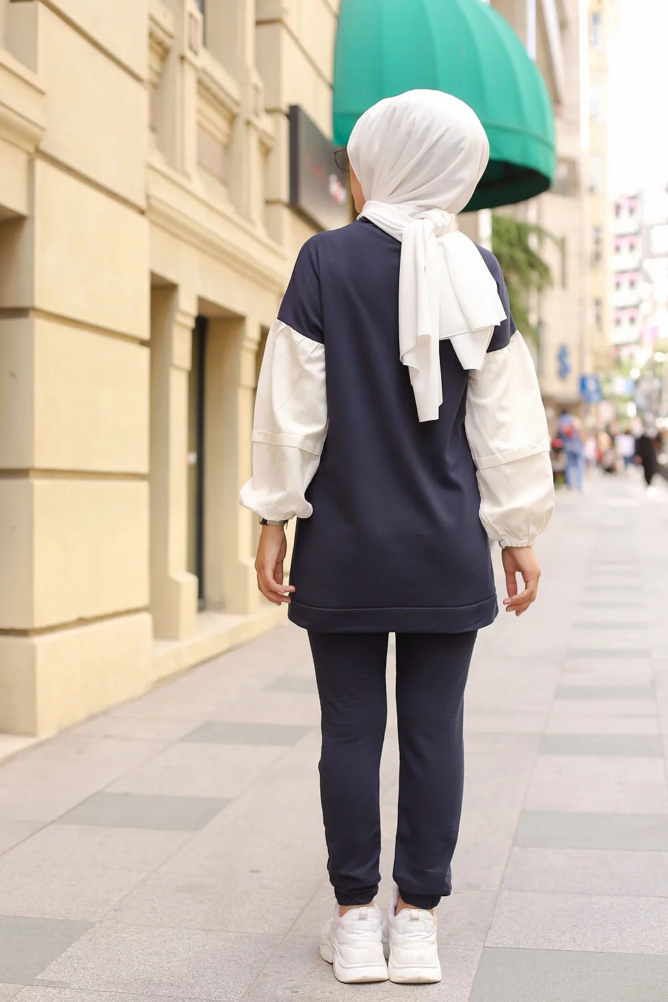 Ensemble survêtement 2 pièces (Vêtement Sport pour femme voilée) - Couleur blanc et Bleu nuit - REF. 32946 (28.00 €)