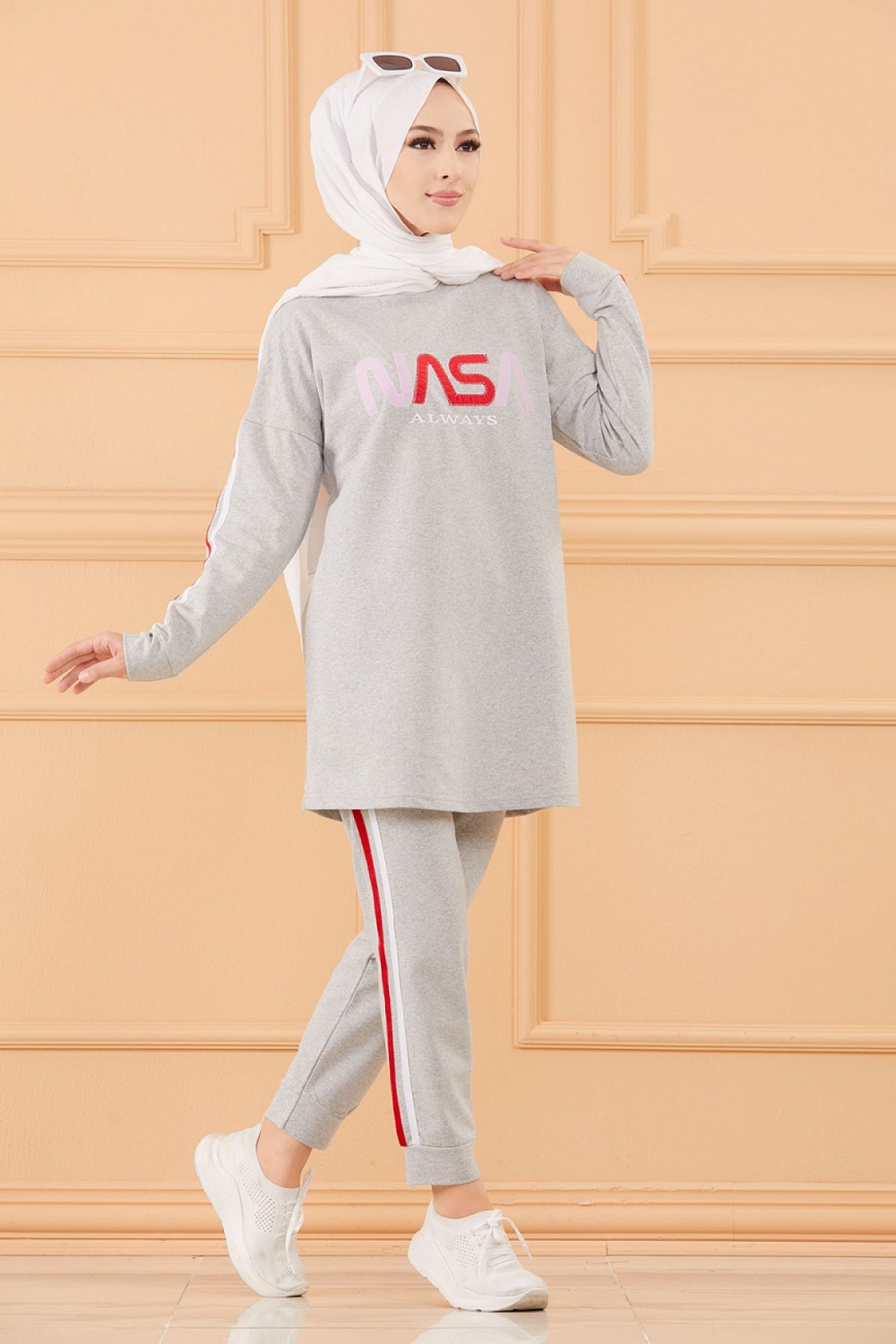 Ensemble survêtement brodé "Nasa" pour femme (Tenue de sport pour Hidjab -Boutique musulmane) - Couleur gris Vetement & Accessoire