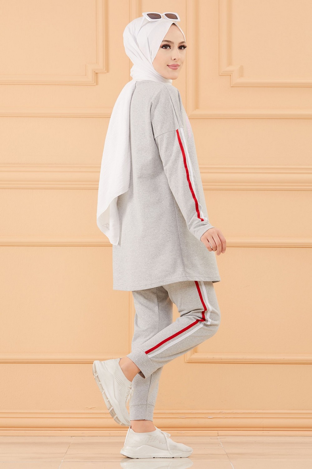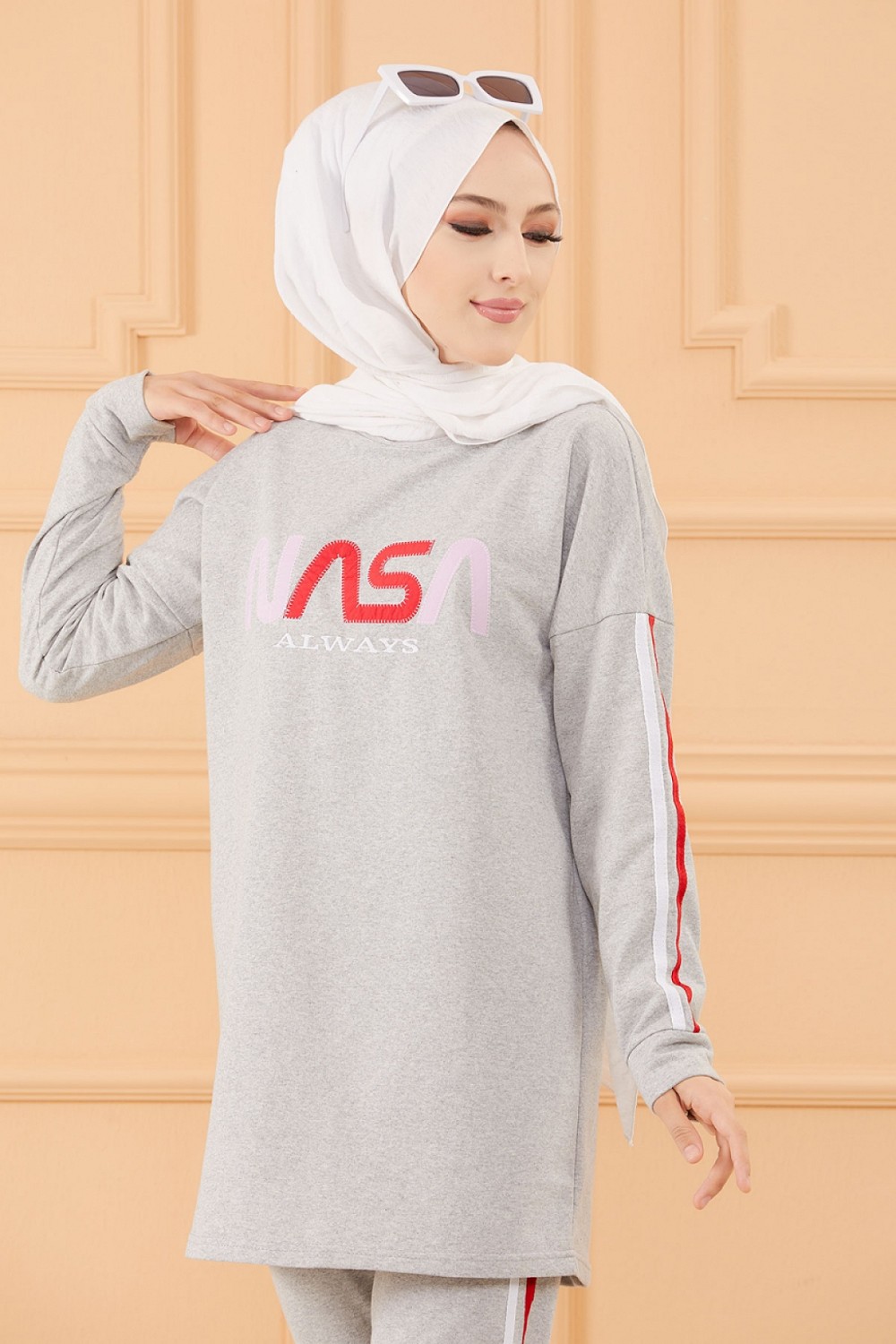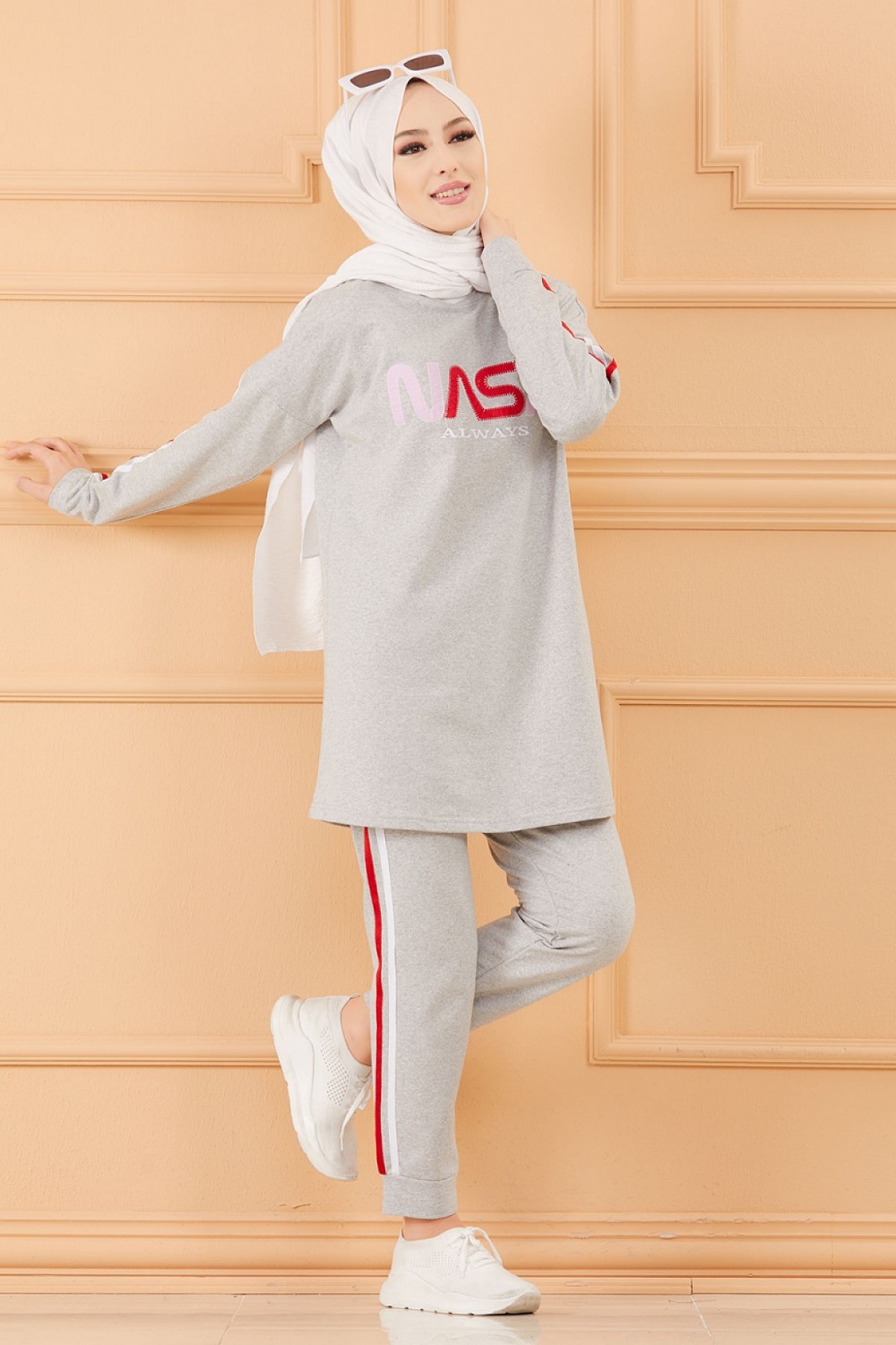 Ensemble survetement brode "Nasa" pour femme (Tenue de sport pour Hidjab -Boutique musulmane) - Couleur gris