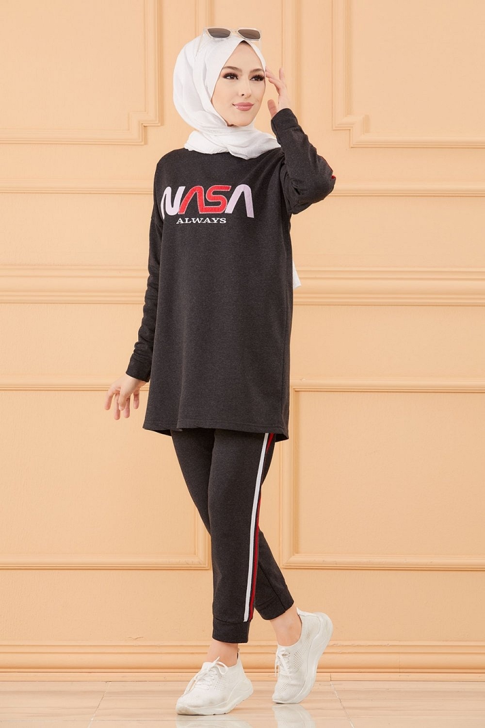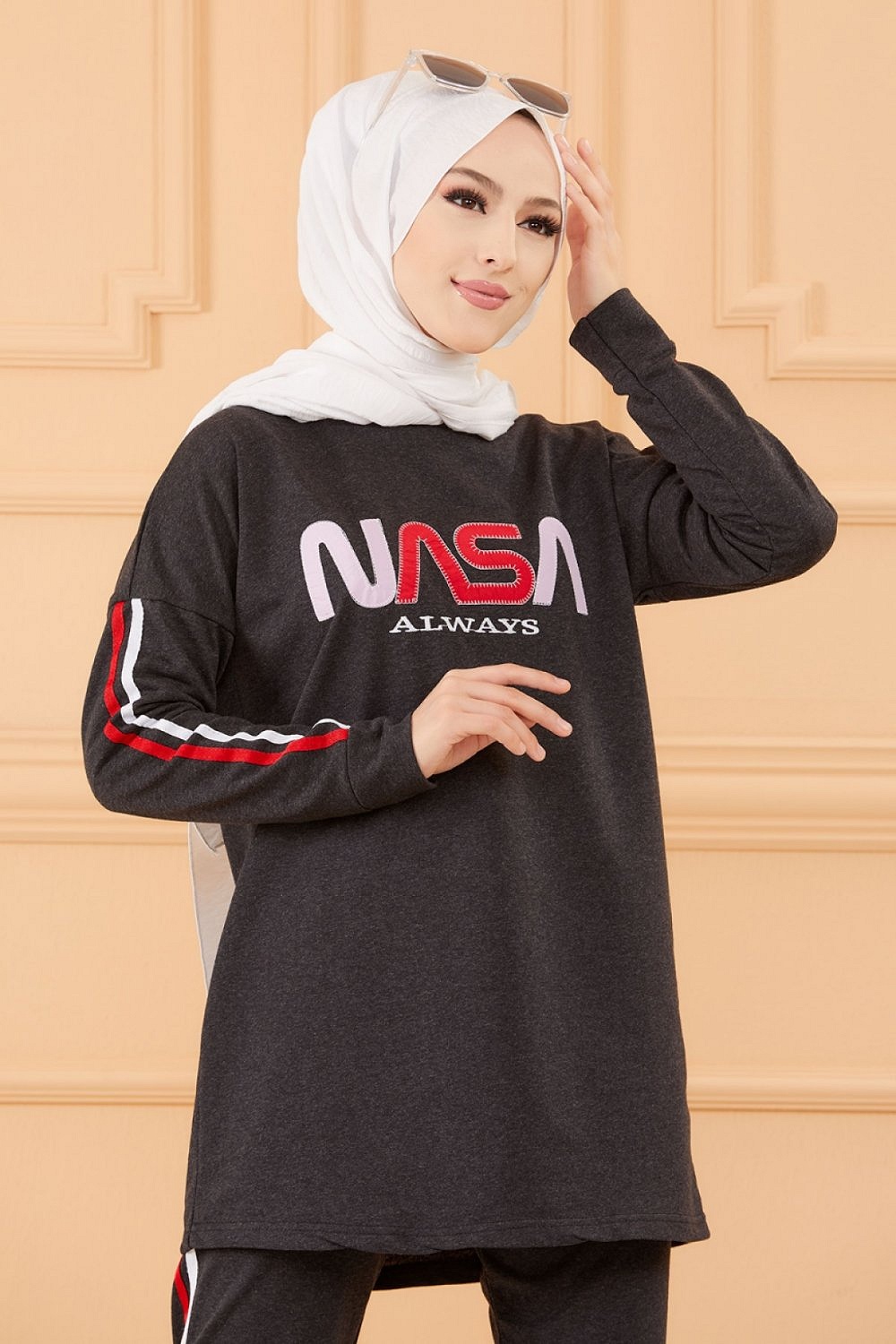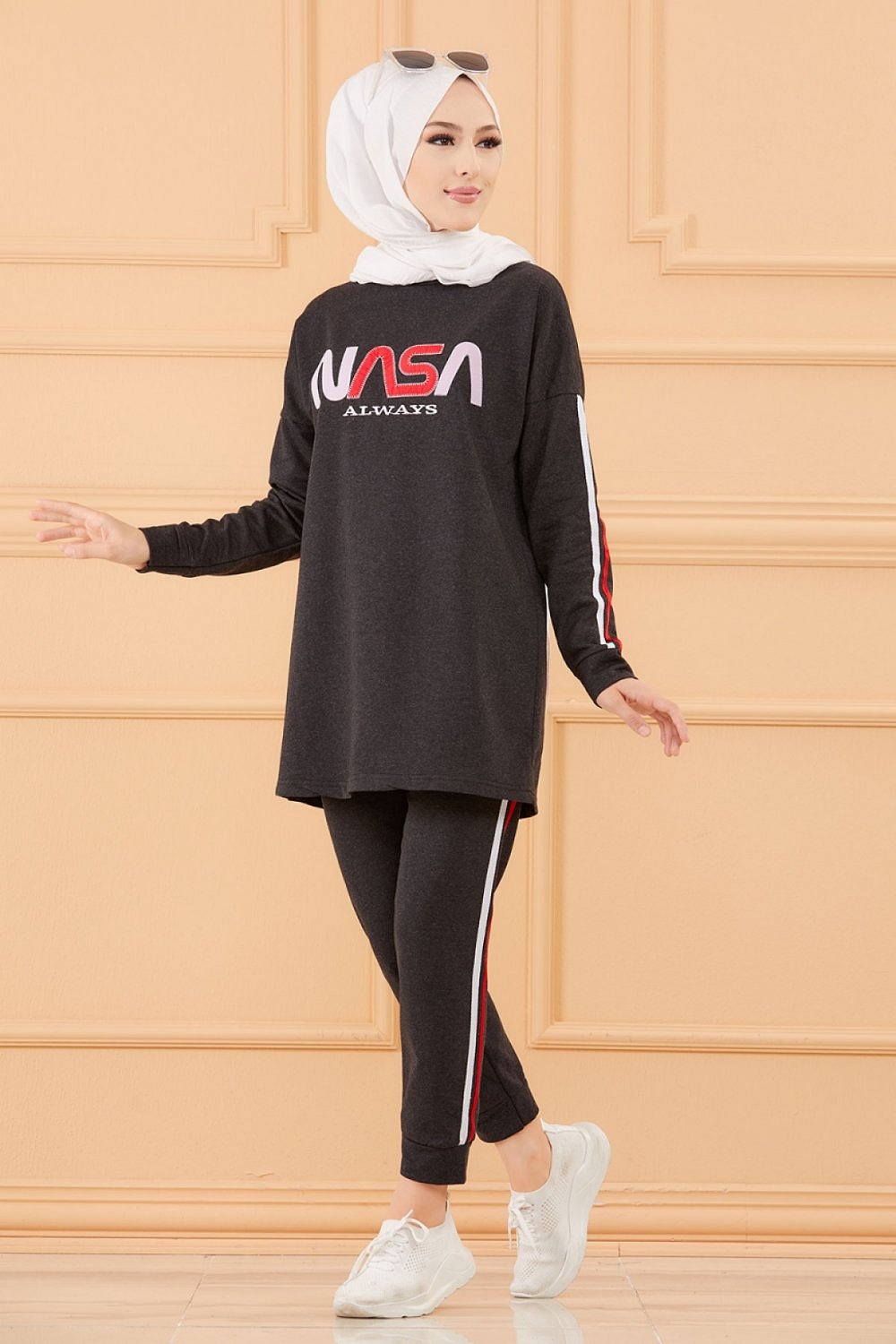 Ensemble survêtement brodé "Nasa" pour femme (Tenue de sport pour Hijab - Boutique en ligne) - Couleur anthracite Vetement & Accessoire