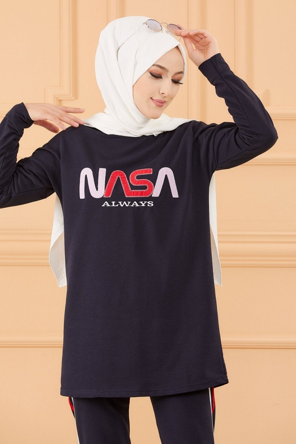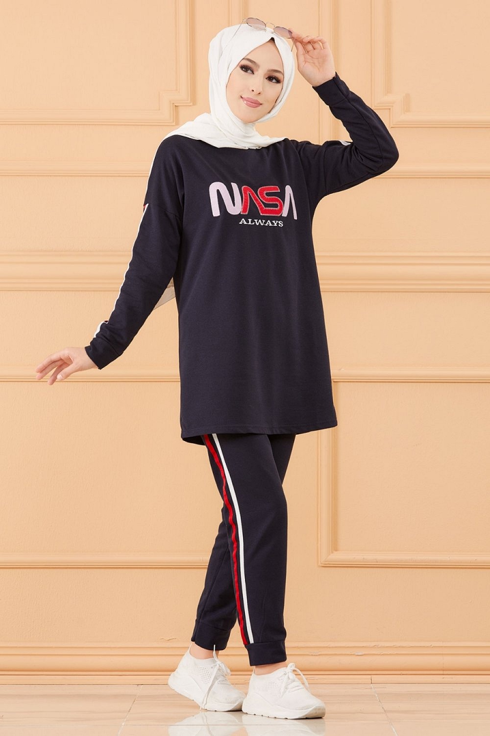 Ensemble survêtement brodé "Nasa" pour femme (Tenue sport Hijab livraison rapide en France) - Couleur bleu marine Vetement & Accessoire