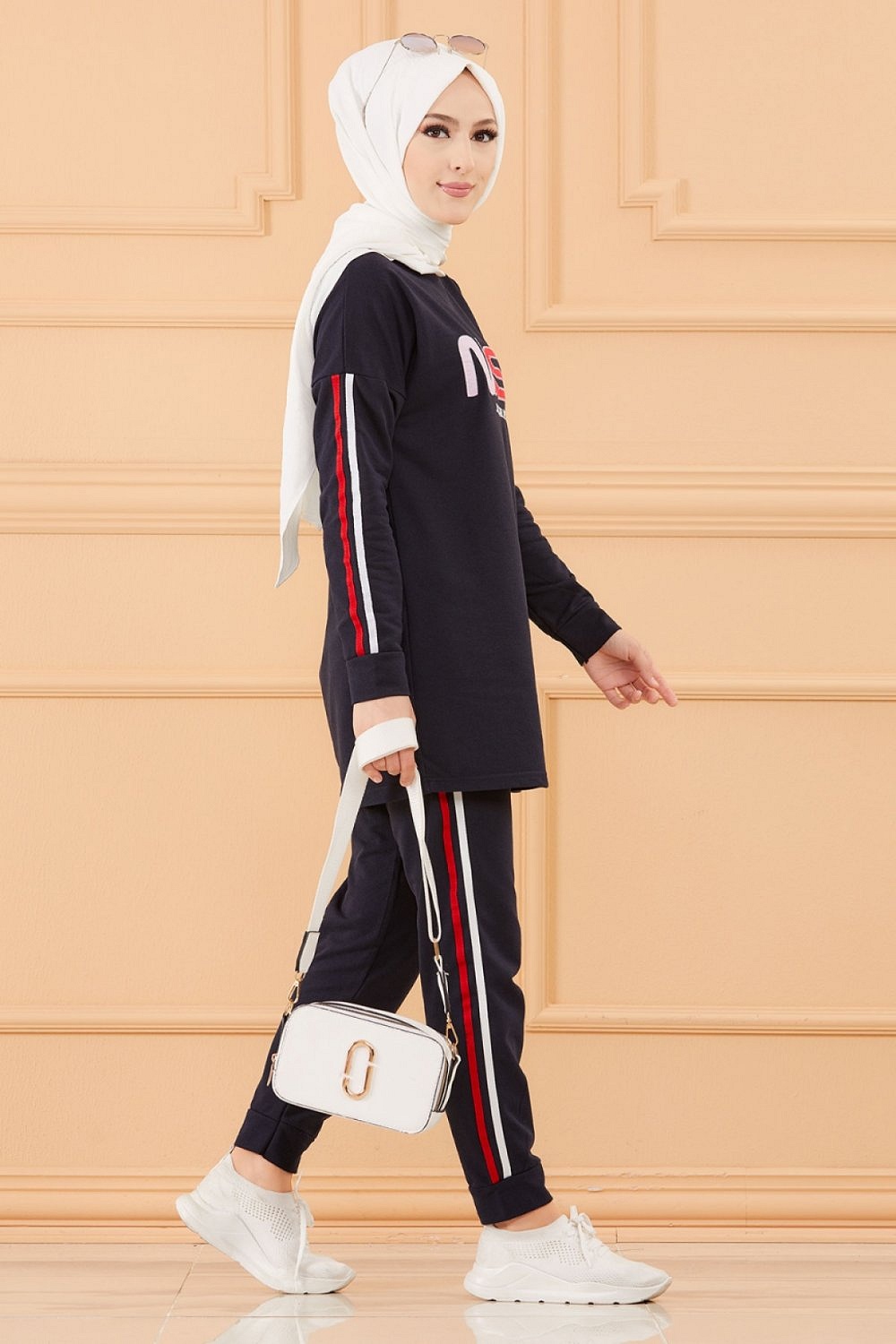 Ensemble survetement brode "Nasa" pour femme (Tenue sport Hijab livraison rapide en France) - Couleur bleu marine
