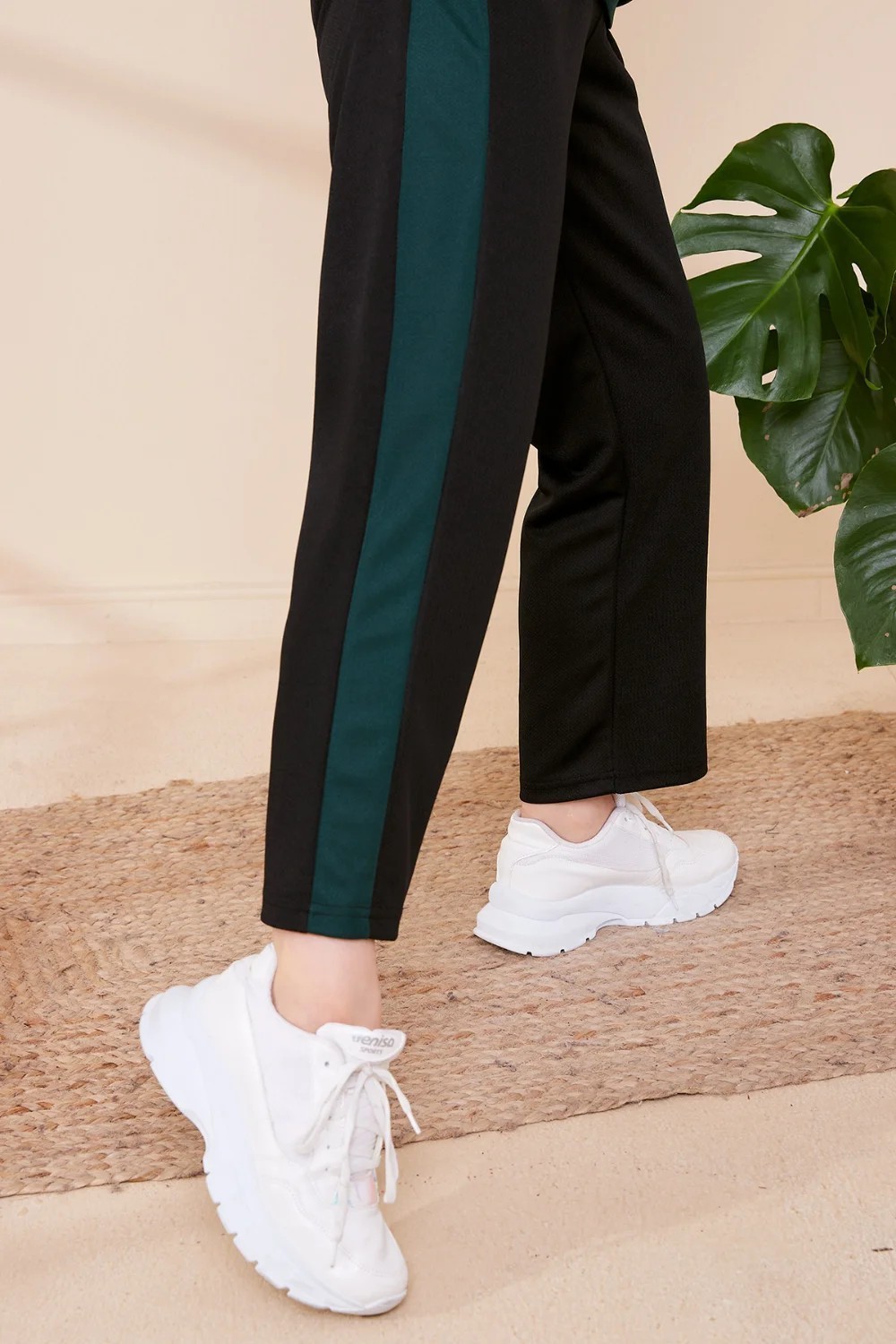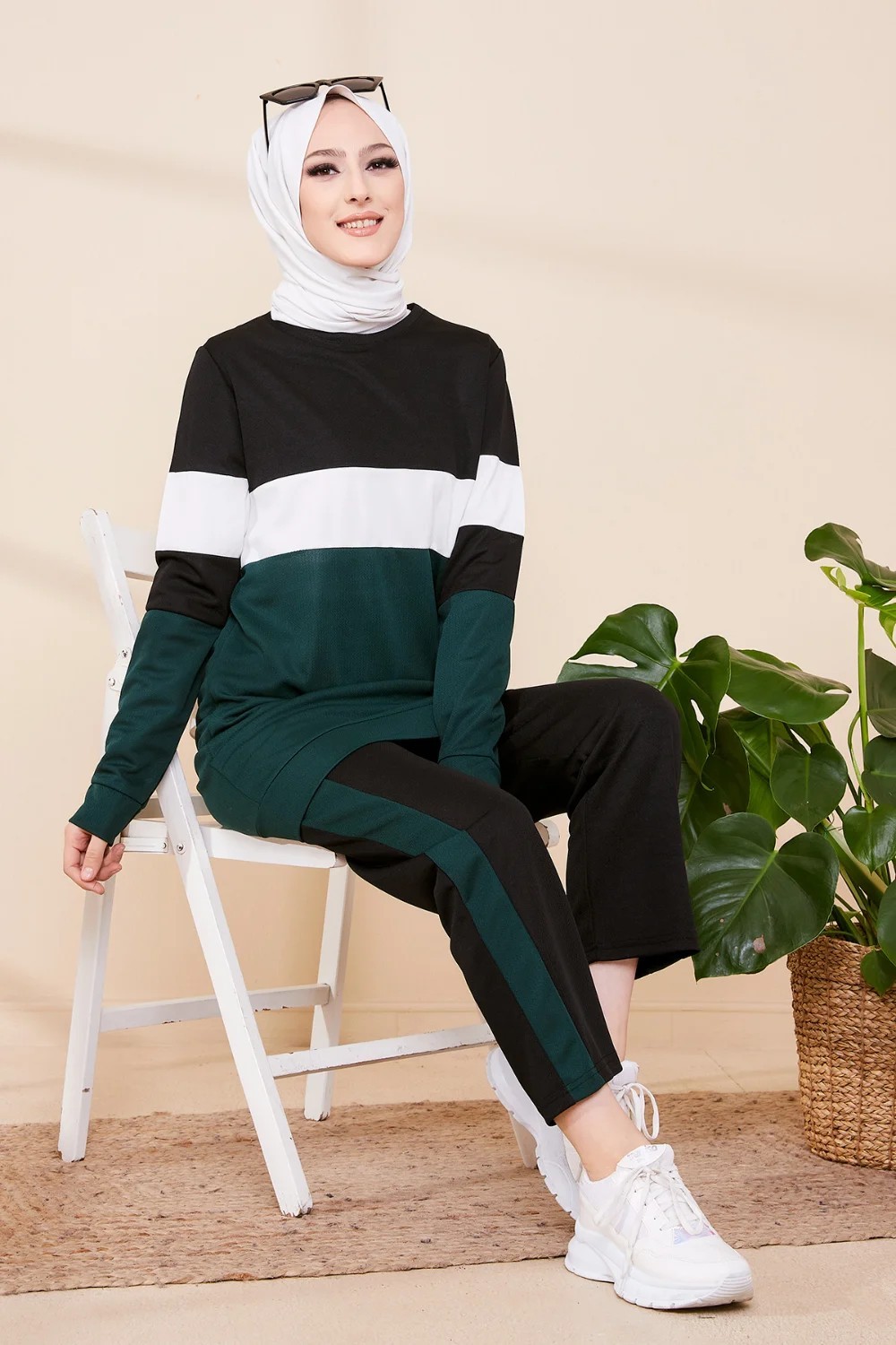 Ensemble survêtement décontracté 2 pièces de couleur noir et vert émeraude pour femme (Vêtement de sport pour Hijab) Vetement & Accessoire