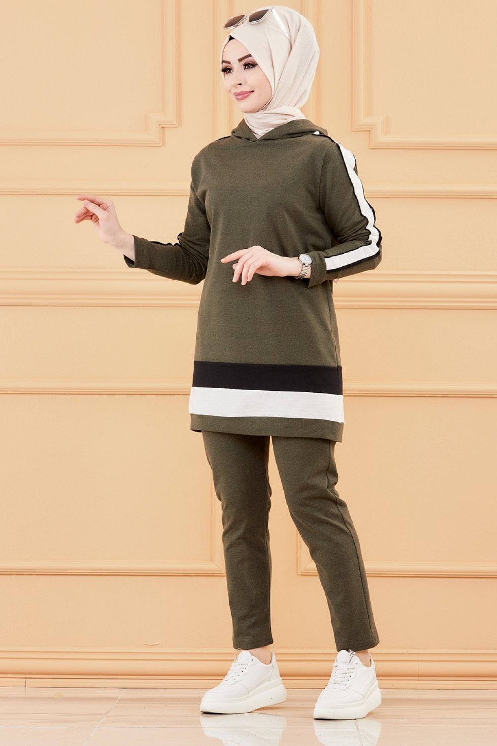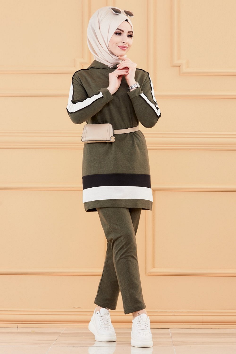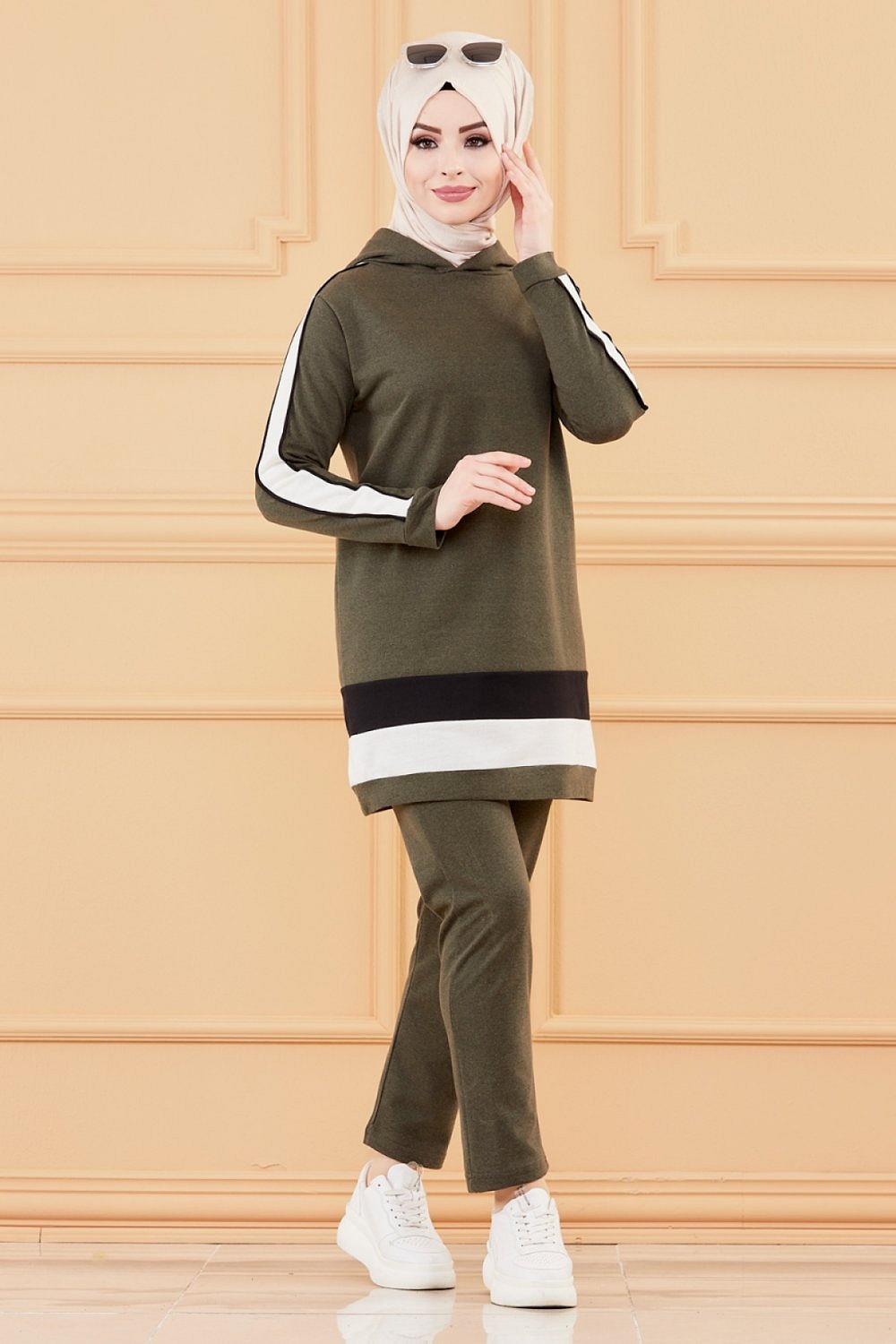 Ensemble survêtement pour femme : Tunique à capuche et Pantalon (Vêtement de sport Hijab) - Couleur kaki Vetement & Accessoire