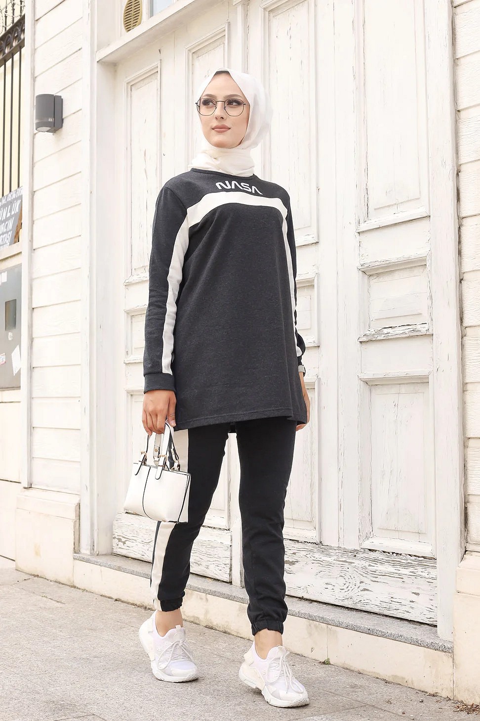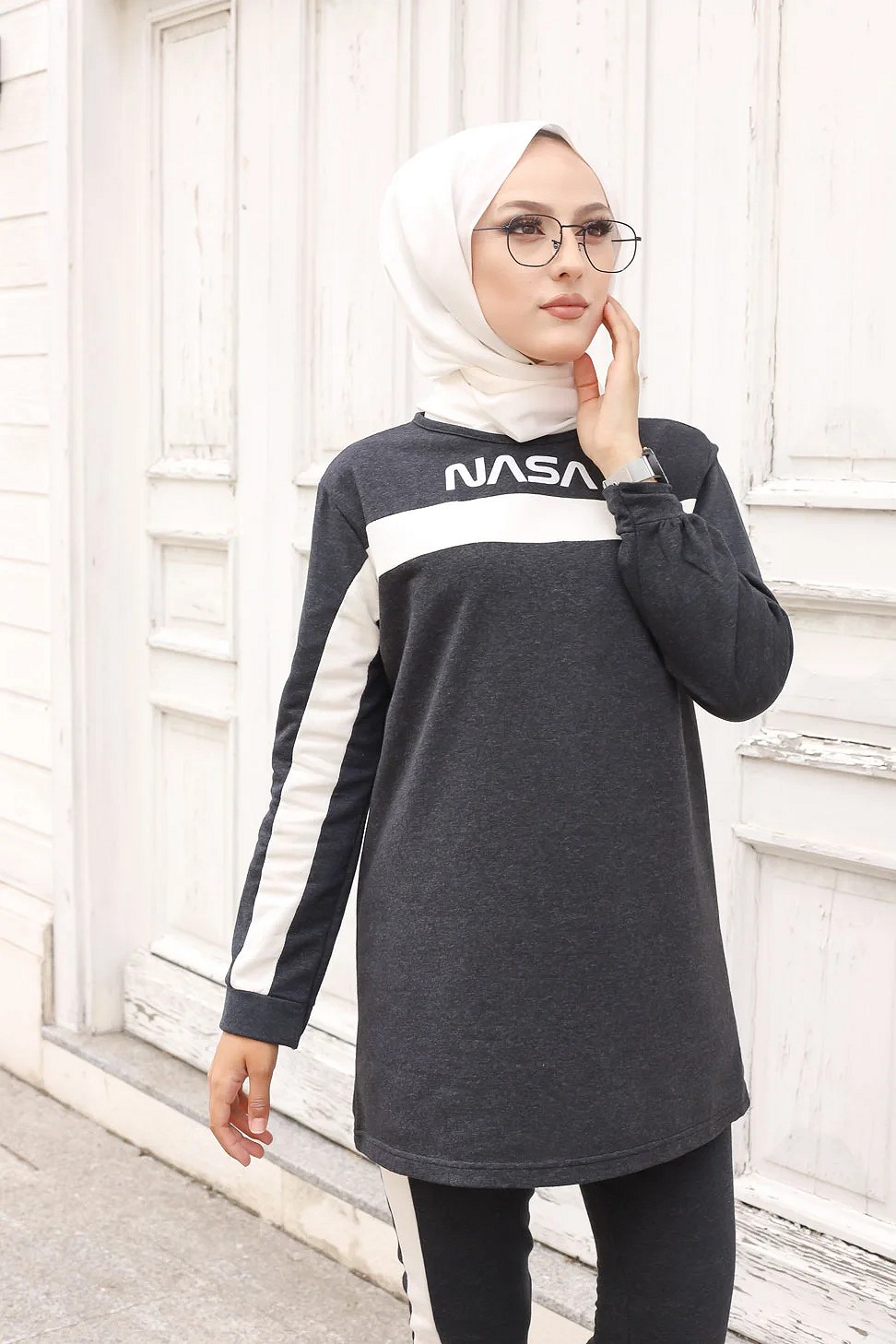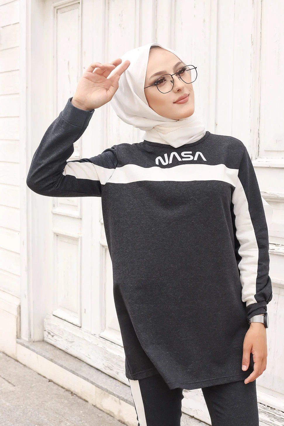 Ensemble survêtement imprimé "NASA" - Tenue pour femme voilée (Hijab sport Turquie pas cher) - Couleur gris clair