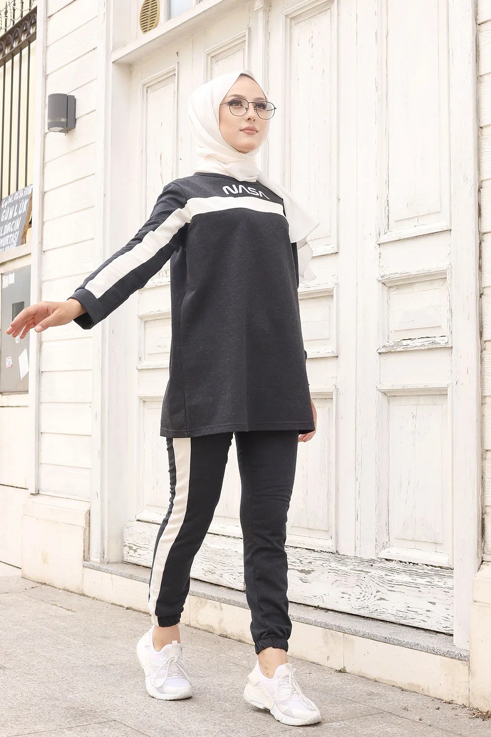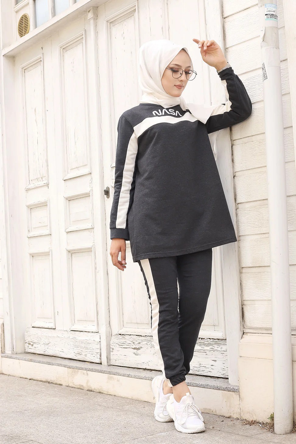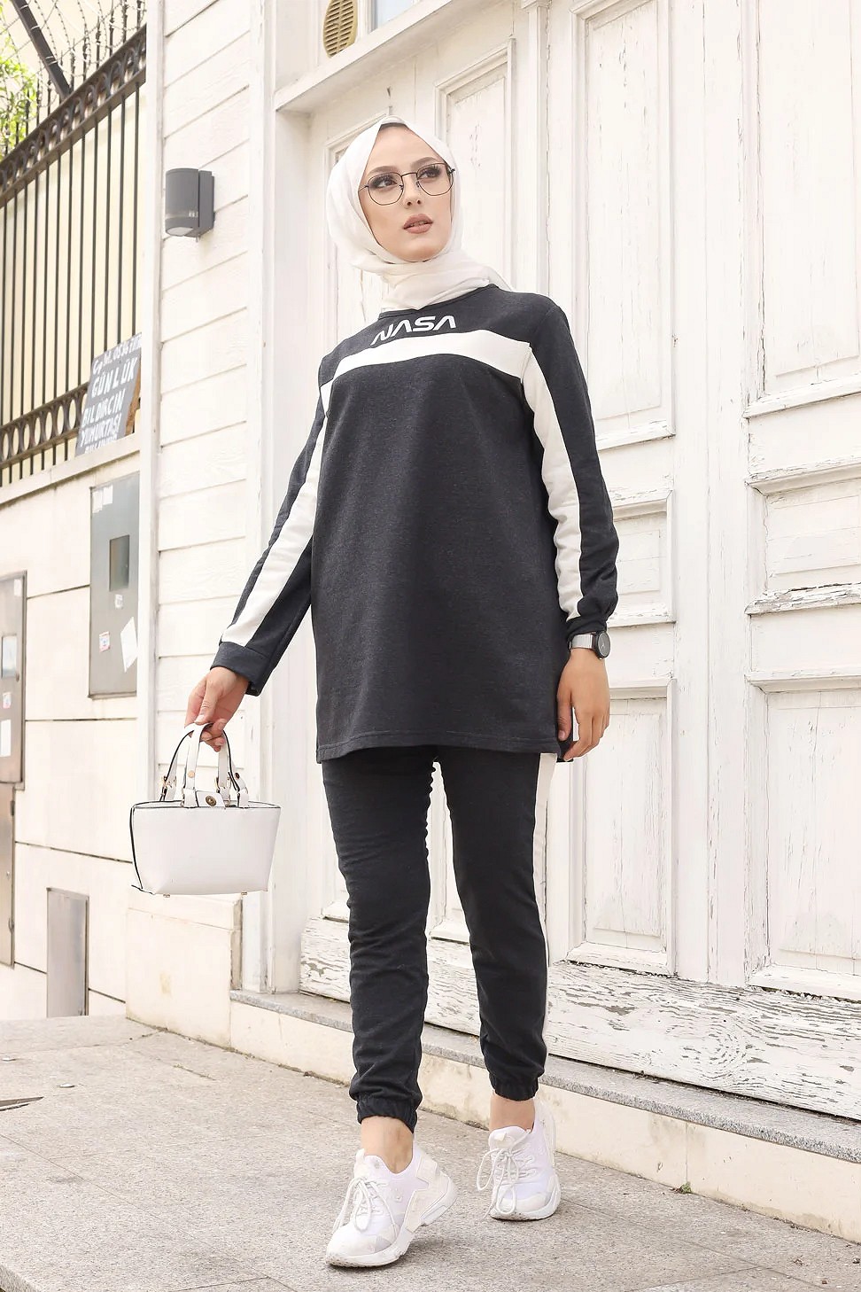 Ensemble survêtement imprimé "NASA" - Tenue pour femme voilée (Hijab sport Turquie pas cher) - Couleur gris clair
