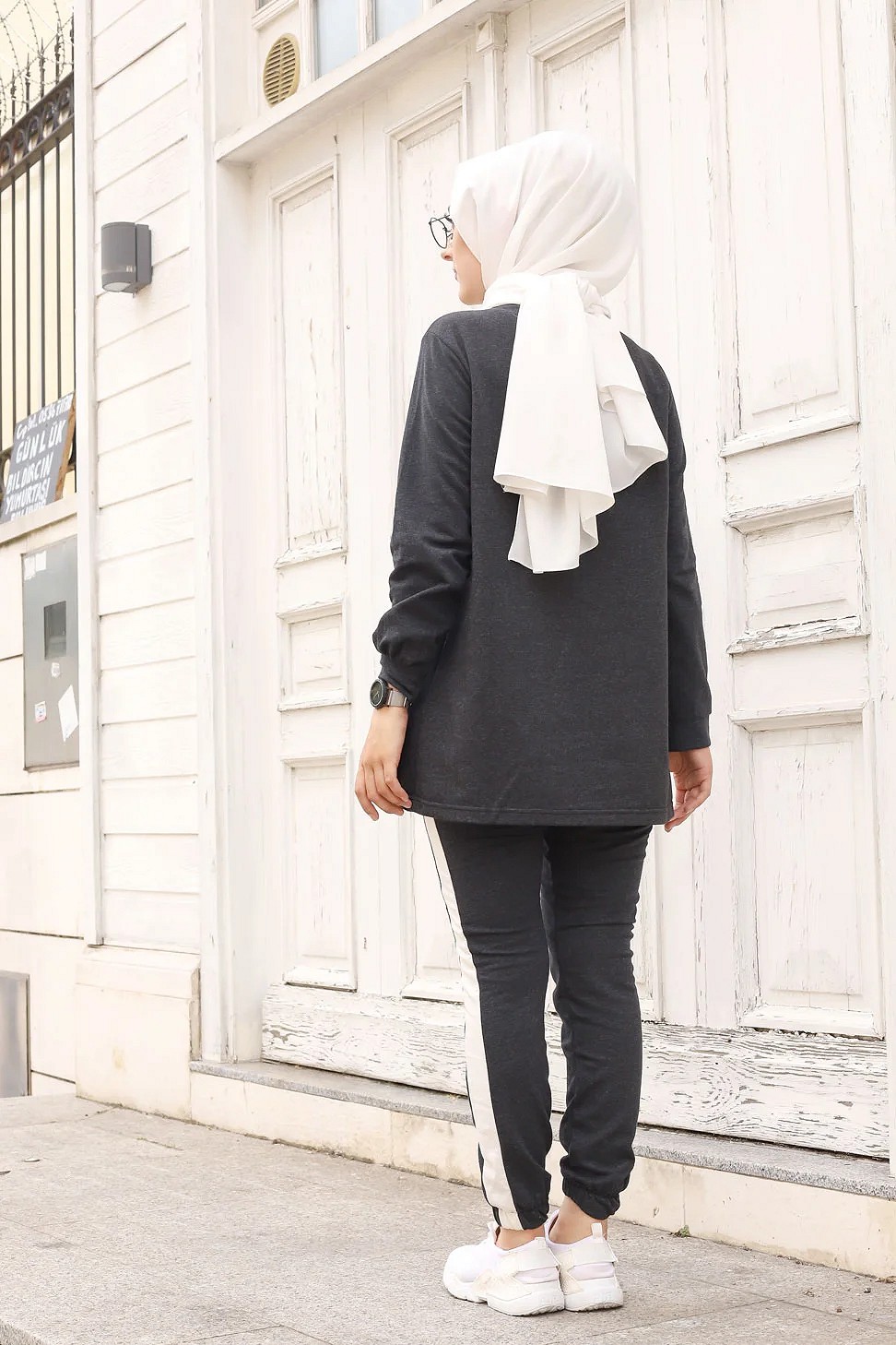 Ensemble survêtement femme 2 pièces (Vetement Hijab Sport pour Musulmane) - Couleur anthracite - REF. 32292 (29.90 €)