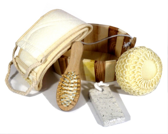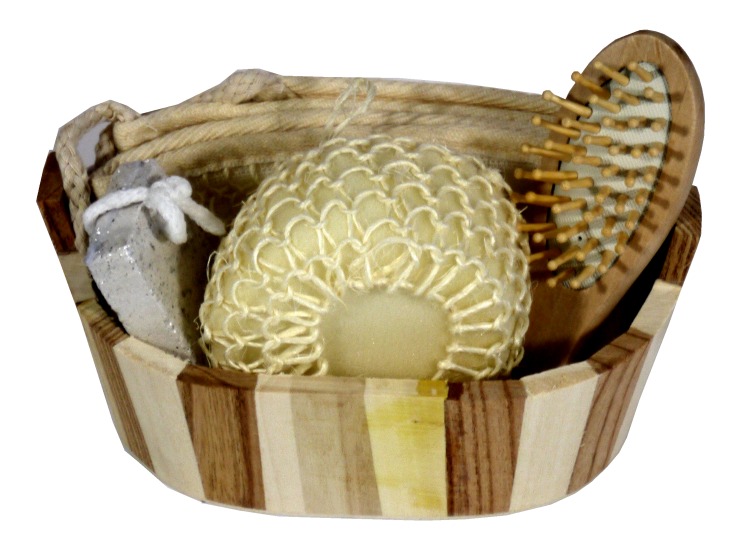 Panier en bois avec ensemble d'accessoires pour le bain (hammam) - REF. 24707 (10.00 €) - En Promotion à 8.50 €