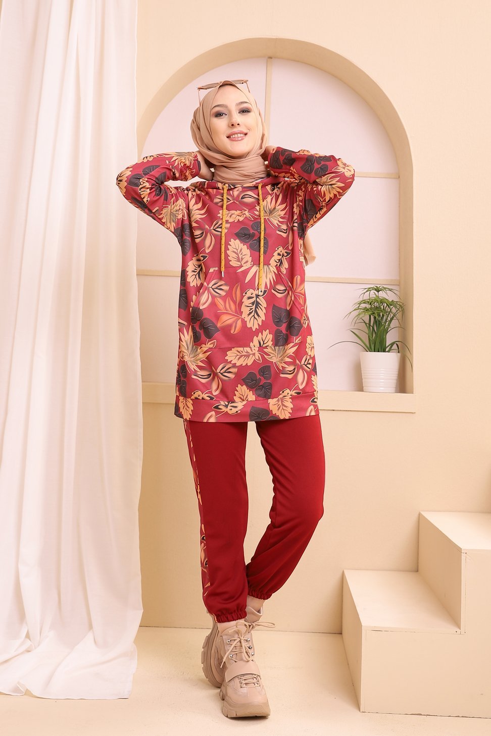 Ensemble tunique et pantalon assorti pour femme (Tenue Hijab Style decontracte) - Couleur rose
