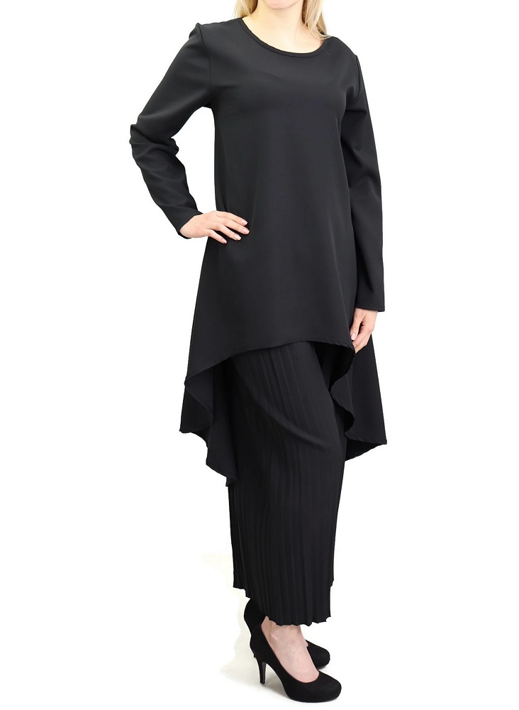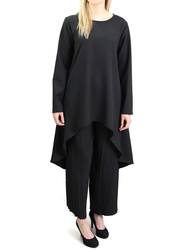 Ensemble tunique et pantalon palazzo plisse couleur Noir - Marque Amelis