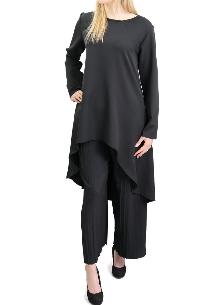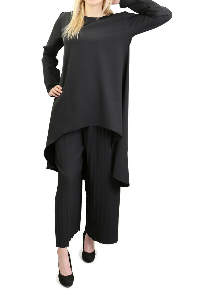 Ensemble tunique et pantalon palazzo plissé couleur Noir - Marque Amelis Vetement & Accessoire