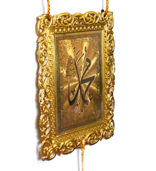 Pendentif islamique décoratif doré le nom du prophète Muhammad et l'attestation de foi (chahada) - REF. 23979 (4.50 €) |