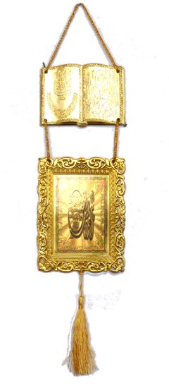 Pendentif dorée de décoration avec Bassmalah, Le nom de prophète (saw) et Sourate Yassin - REF. 23992 (3.90 €) |