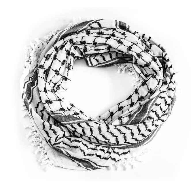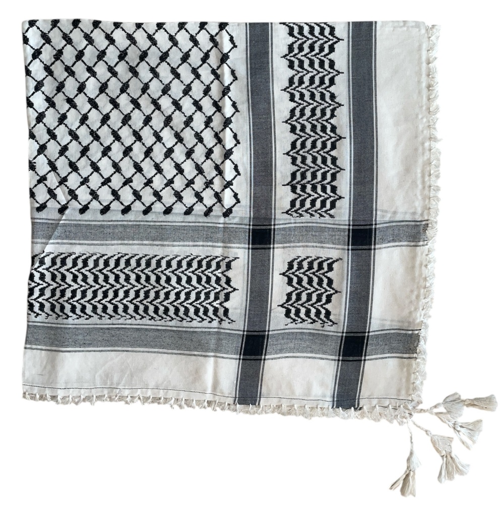 Foulard palestinien (Keffieh) blanc avec parties noires (Ghutra blanche)