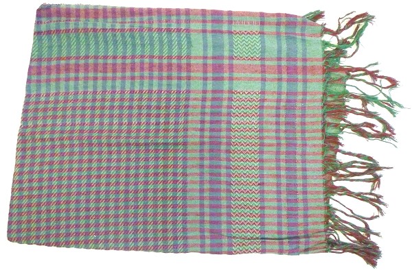 Foulard palestinien blanc à carreaux verts et violets (100% coton) - REF. 17295 (8.00 €)