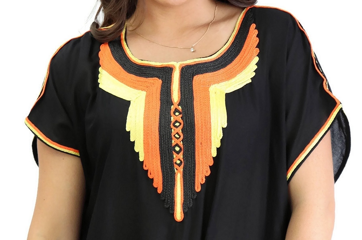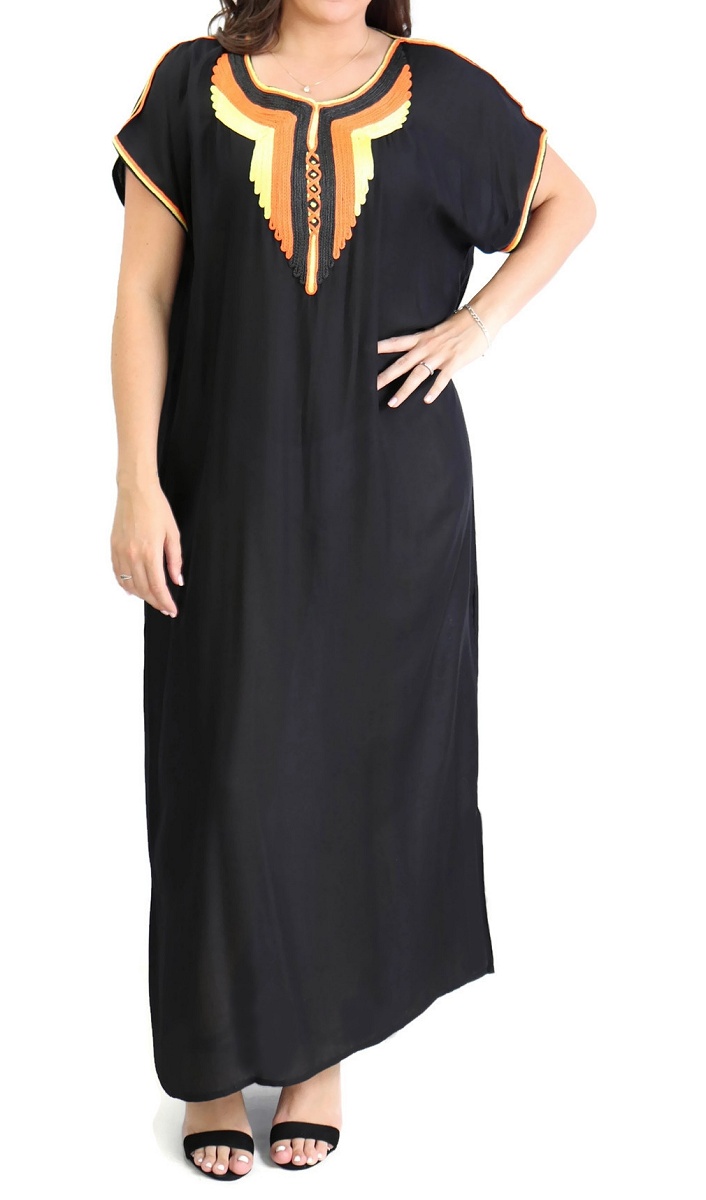 Gandoura / Robe traditionnelle marocaine manches courtes pour femme - Couleur Noir Vetement & Accessoire