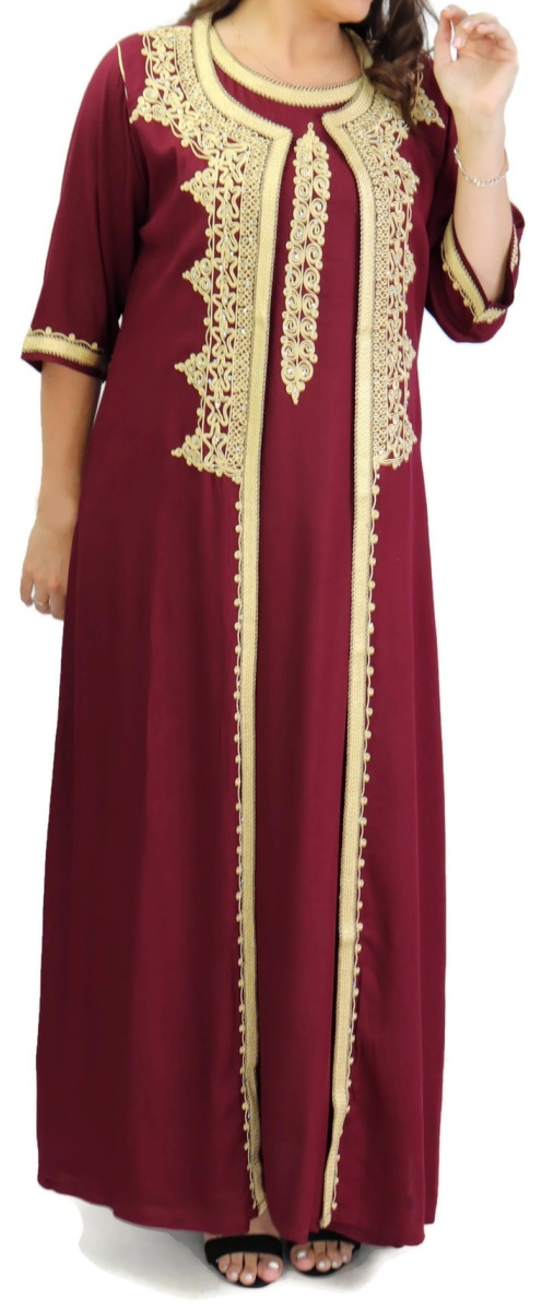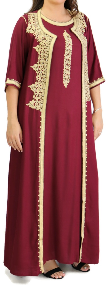 Gandoura marocaine (ensemble deux pièces robe et kimono) avec broderies dorées - Couleur Bordeaux Vetement & Accessoire