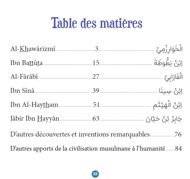 Plus qu’un simple hommage, cet ouvrage - bilingue en arabe vocalisé et en français favorisant une découverte enrichissante pour tous les lecteurs - célèbre les contributions majeures de la civilisation musulmane, dont l’impact continue d’inspirer notre époque moderne.