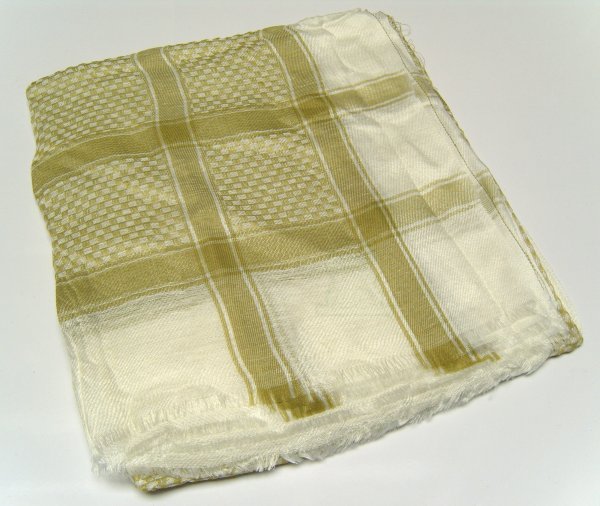 Ghutra blanche de forme carré avec motifs en couleurs.