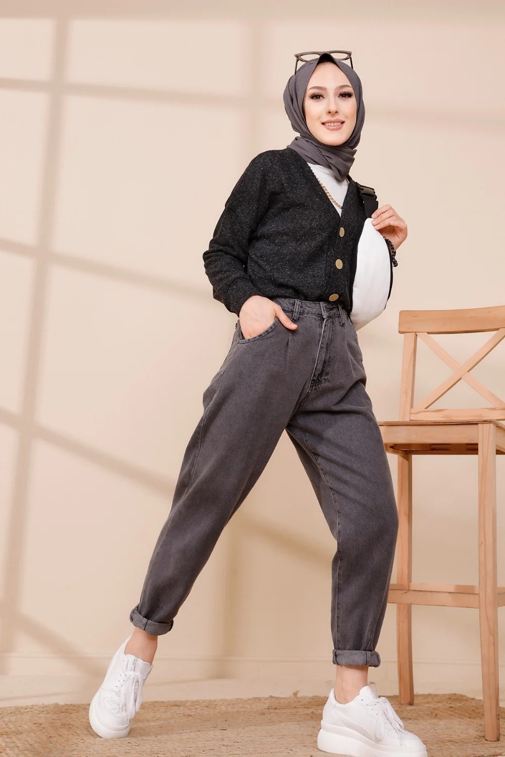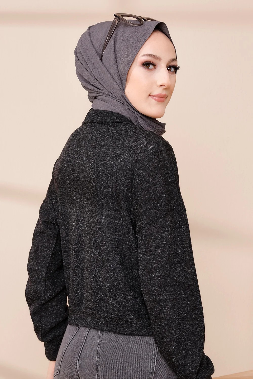Cardigan Sweat zippé long argenté style moderne - Tenue de Sport longue et décontractée pour femme - Couleur noir - REF. 33798 (29.90 €)