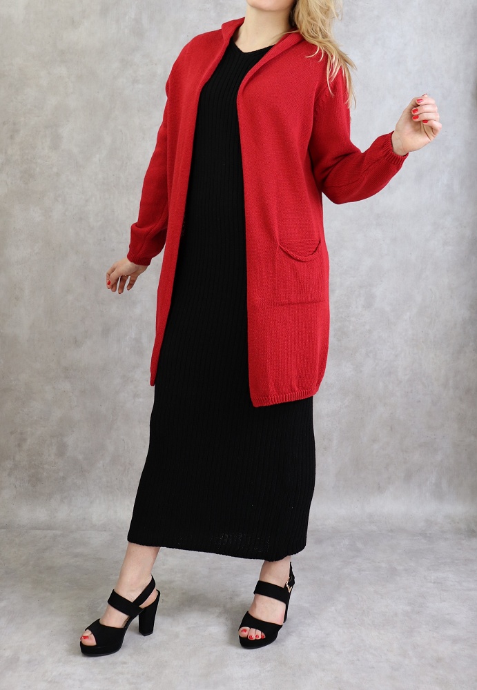 Veste longue classique boutonnée élégante (Vêtement Hijab) - Couleur framboise - REF. 32950 (24.90 €)