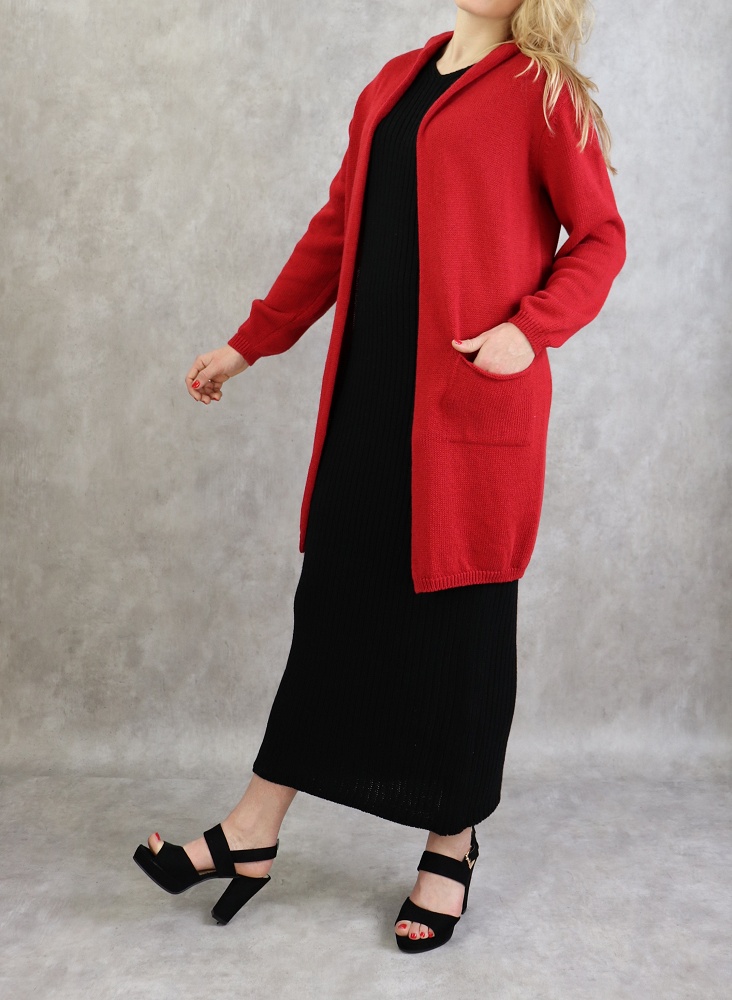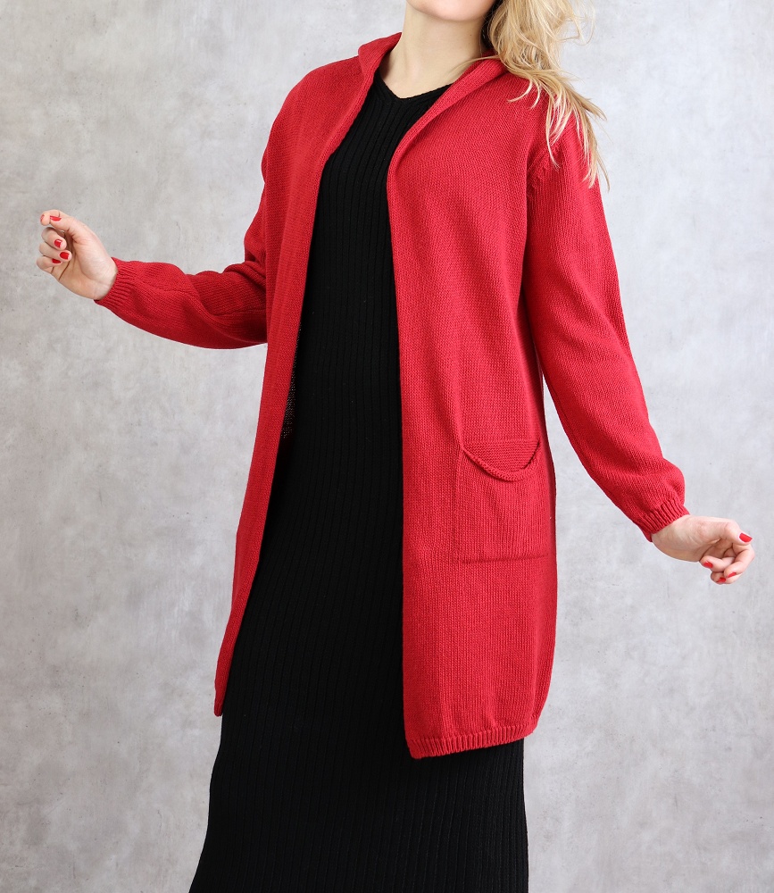 Gilet Star femme mi-long à capuche de marque Amelis Paris- Couleur rouge Vetement & Accessoire
