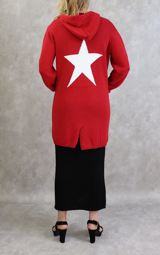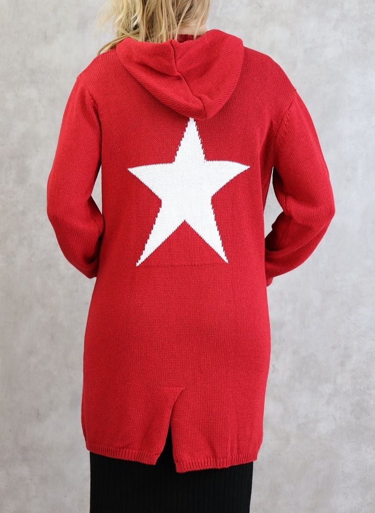 Gilet Star femme mi-long a capuche de marque Amelis Paris- Couleur rouge