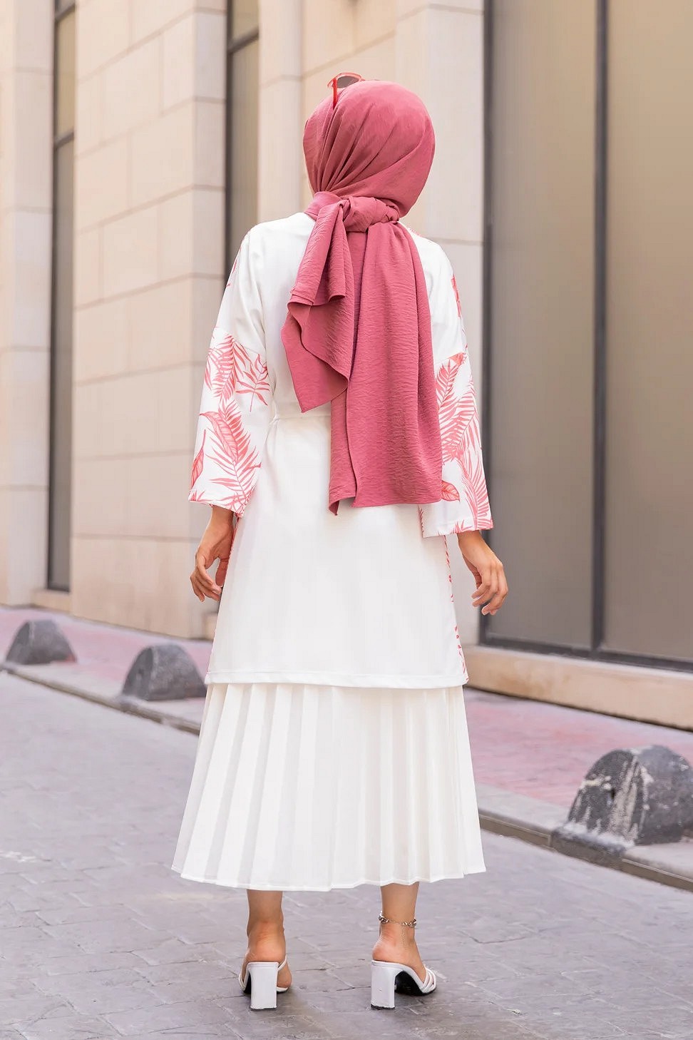 Tunique à volants (Vetement hijab pour femme musulmane) - Couleur beige et blanc - REF. 33101 (19.90 €)