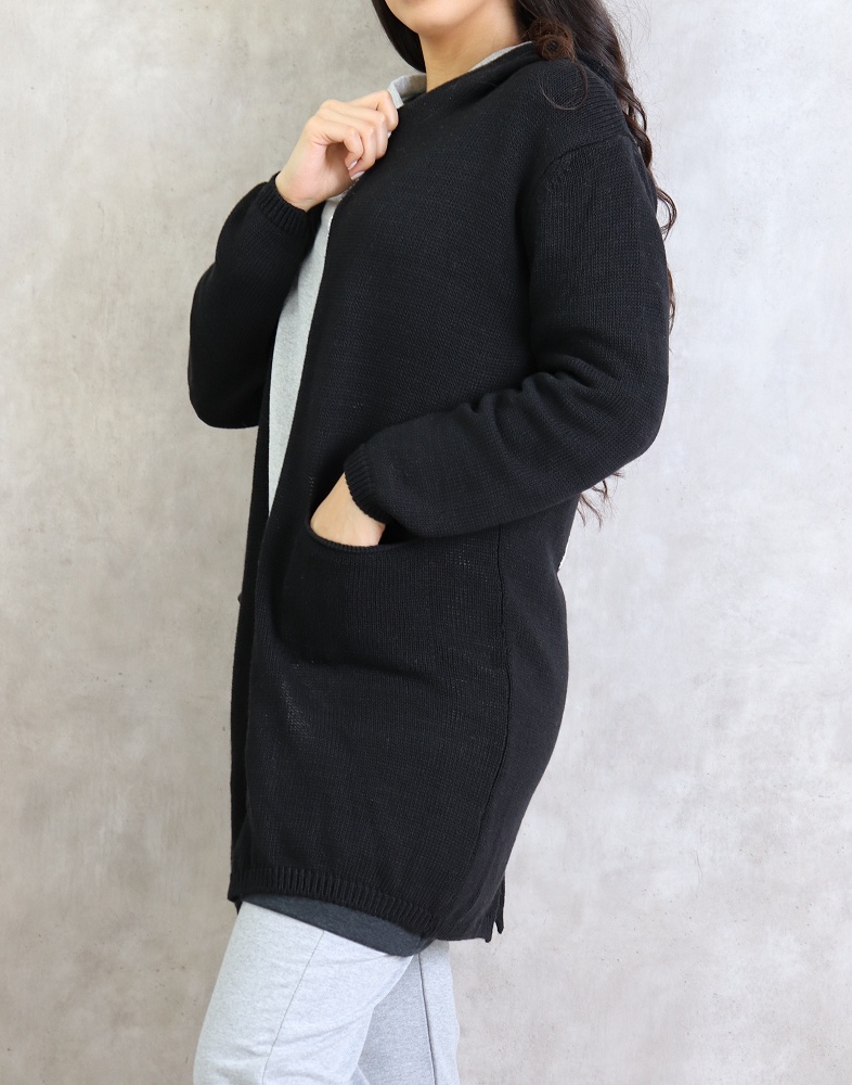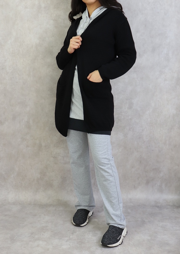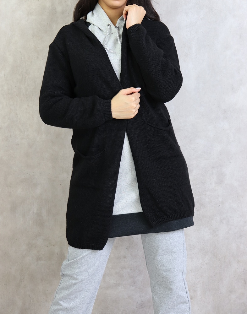 Gilet long en maille - Cardigan femme - Couleur noir - REF. 37555 (29.90 €) - En Promotion à 19.90 €