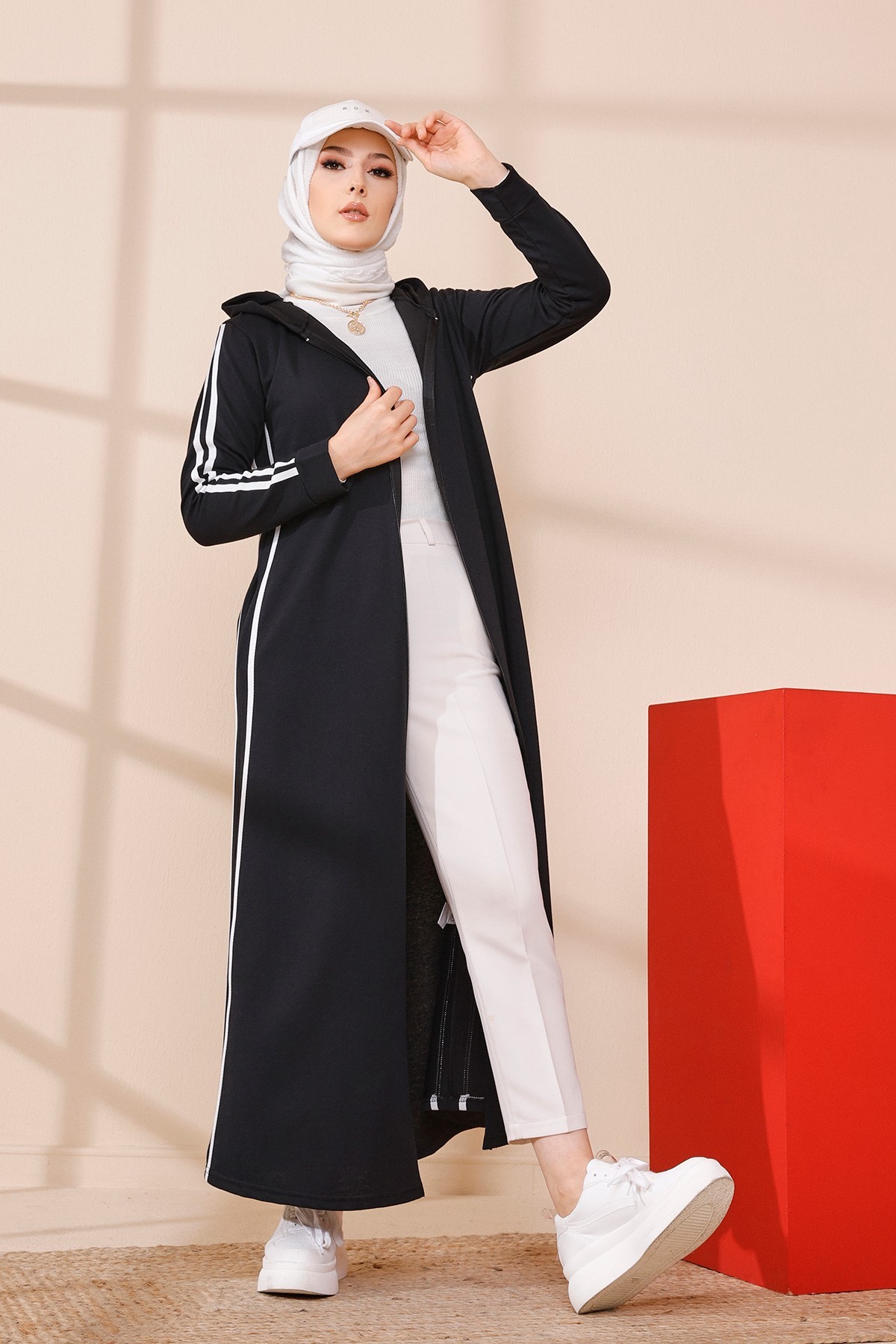 Gilet long - Veste longue sportswear (Tenue de sport pour femme musulmane) - Couleur noir