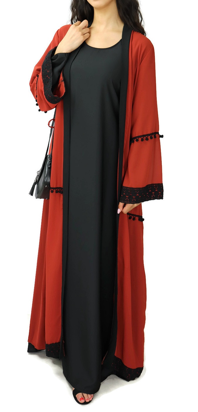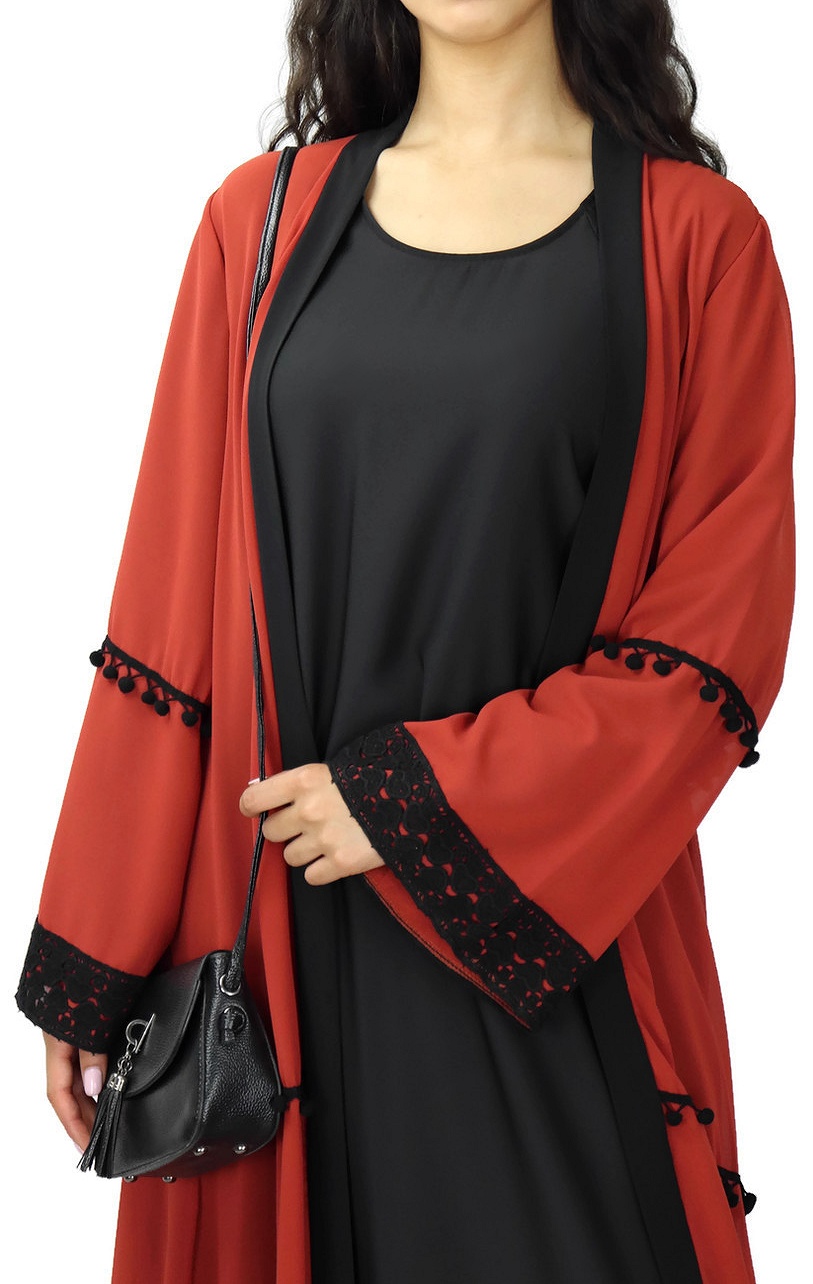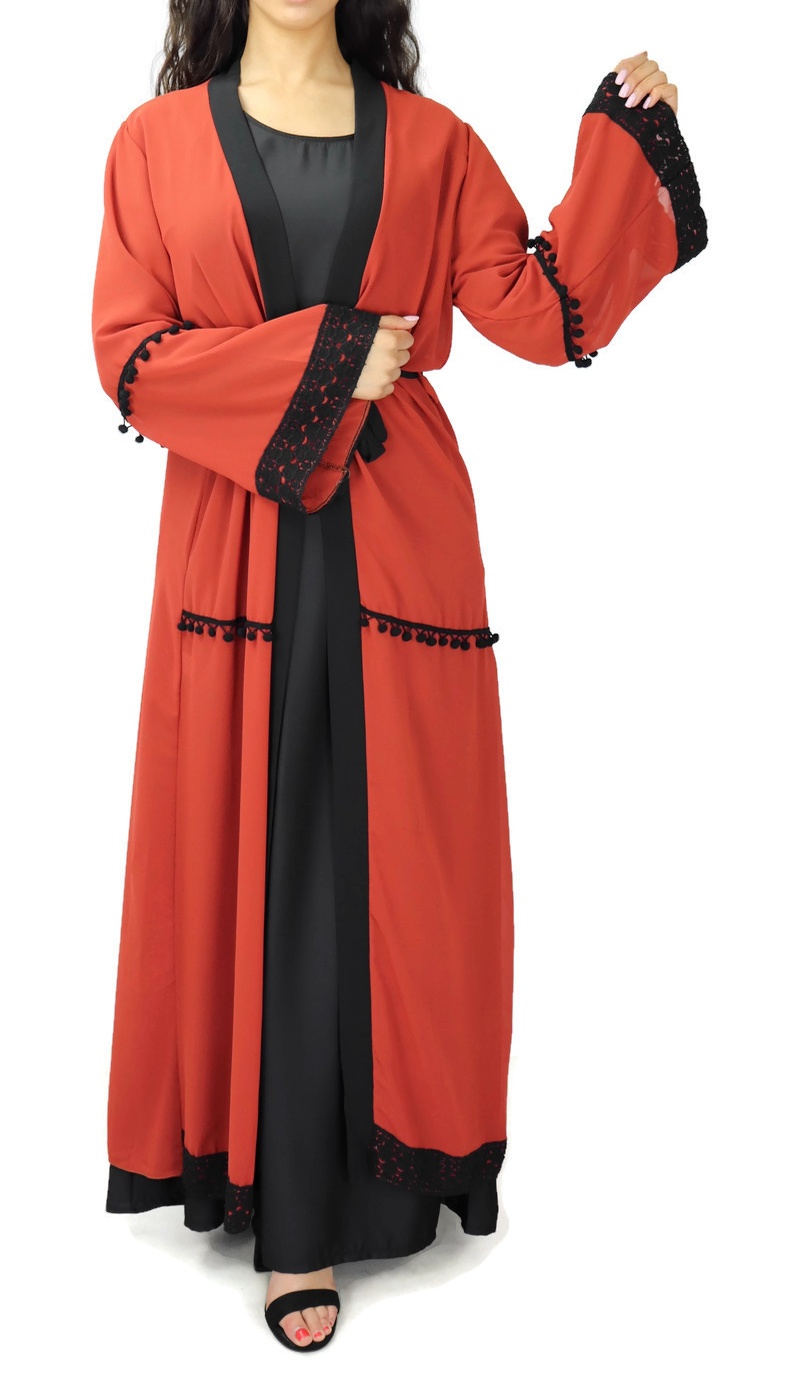 Simple et utile, il se porte ouvert ou fermé et on peut l'ajuster à la taille ou non selon les circonstances. Ses manches sont légèrement évasées, elles sont ornées de pompons qui feront sensation, alors saisissez l'occasion en vous offrant ce beau cardigan.