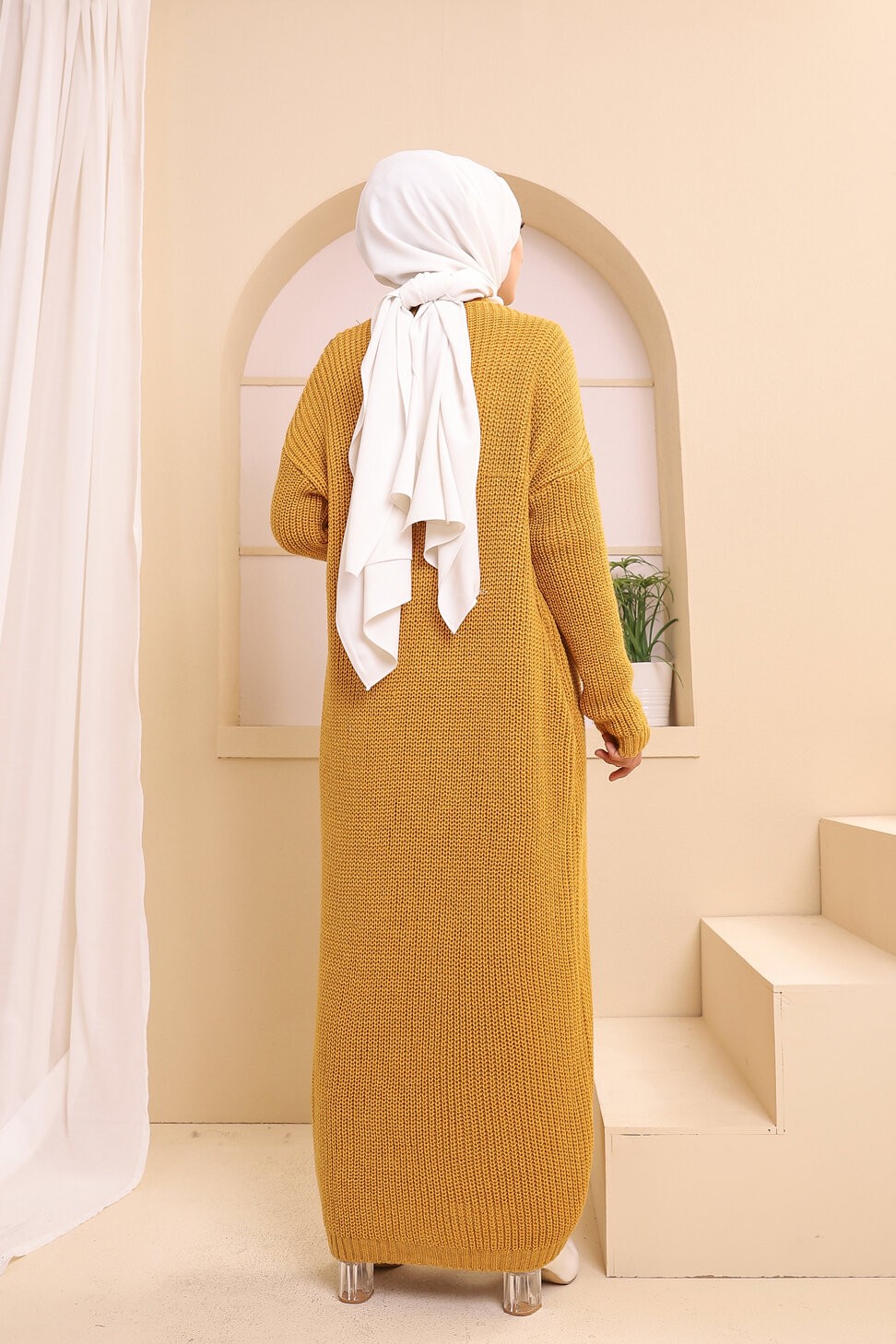Gilet long en maille - Cardigan femme - Couleur moutarde