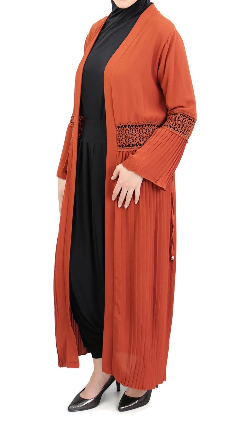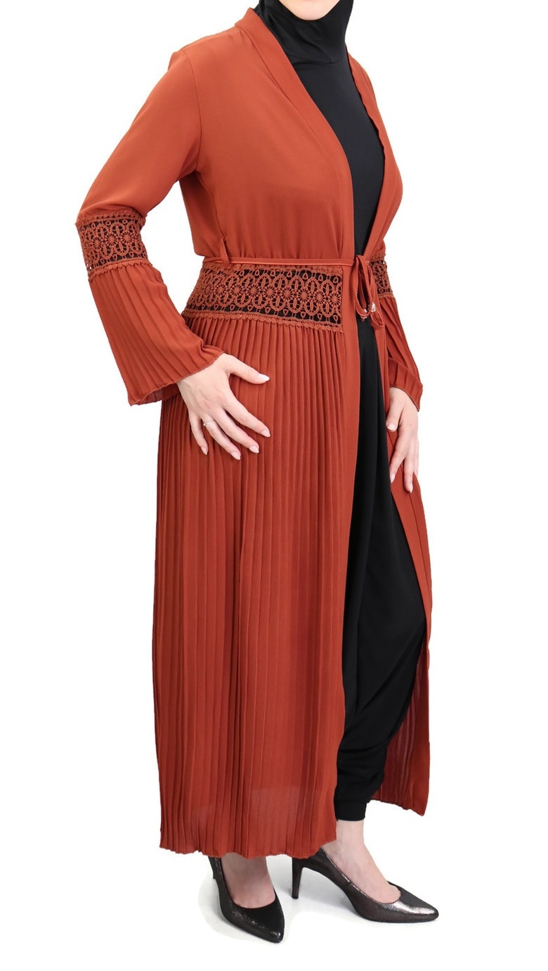 Élégant gilet avec parties brodées (dentelle au niveau du ventre et des coudes) et parties plissés. A mettre sur une robe d'une couleur différente pour avoir un effet comme sur les photos. Peut se porter avec ou sans ceinture. Ouvert ou fermé.
