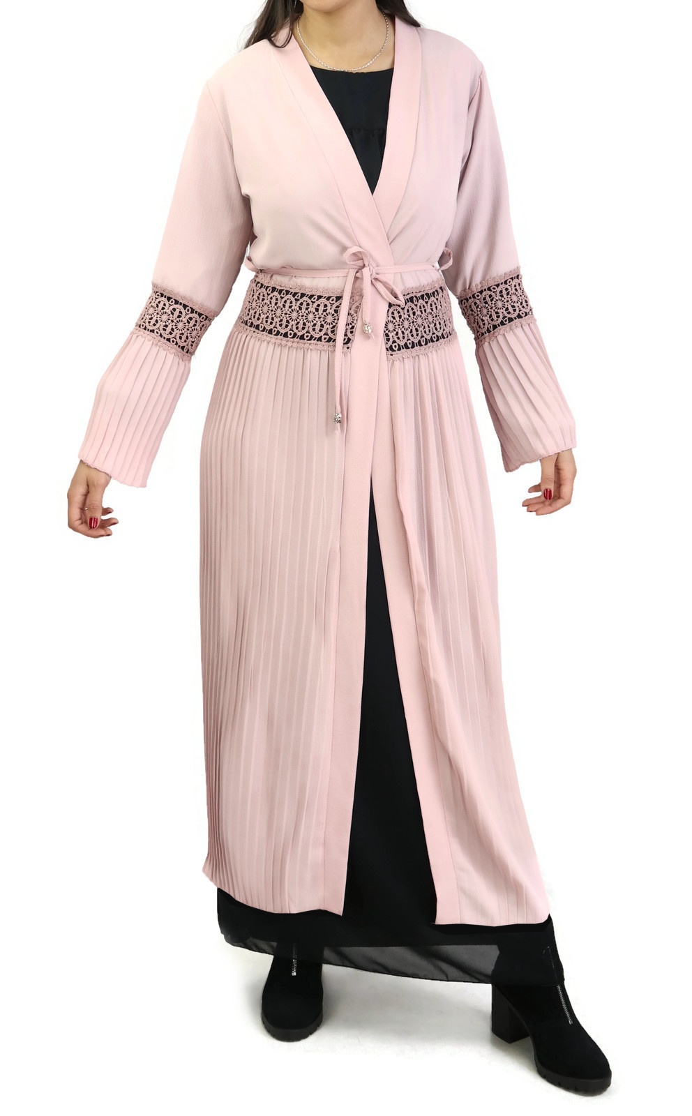 Dans un esprit classique chic tendance, découvrez ce gilet avec parties brodées (dentelle au niveau du ventre et des coudes) et parties plissés. Peut se porter avec ou sans ceinture. Ouvert ou fermé.