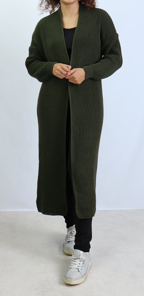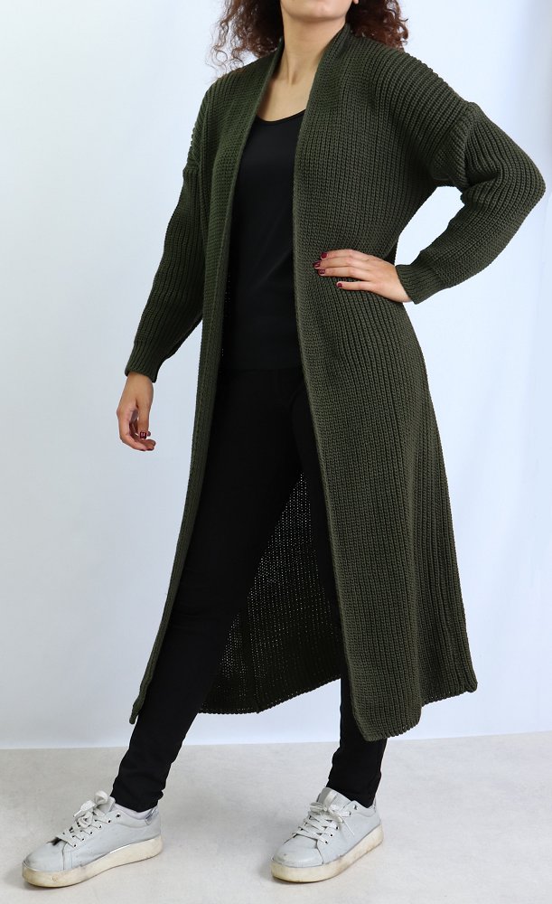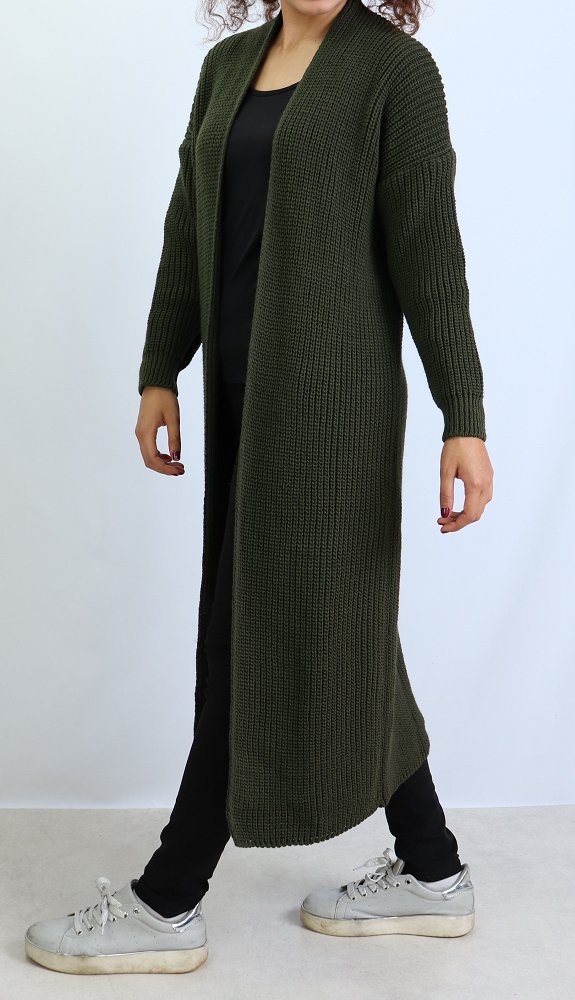 Gilet maxi long en maille - Couleur Vert foncé Vetement & Accessoire