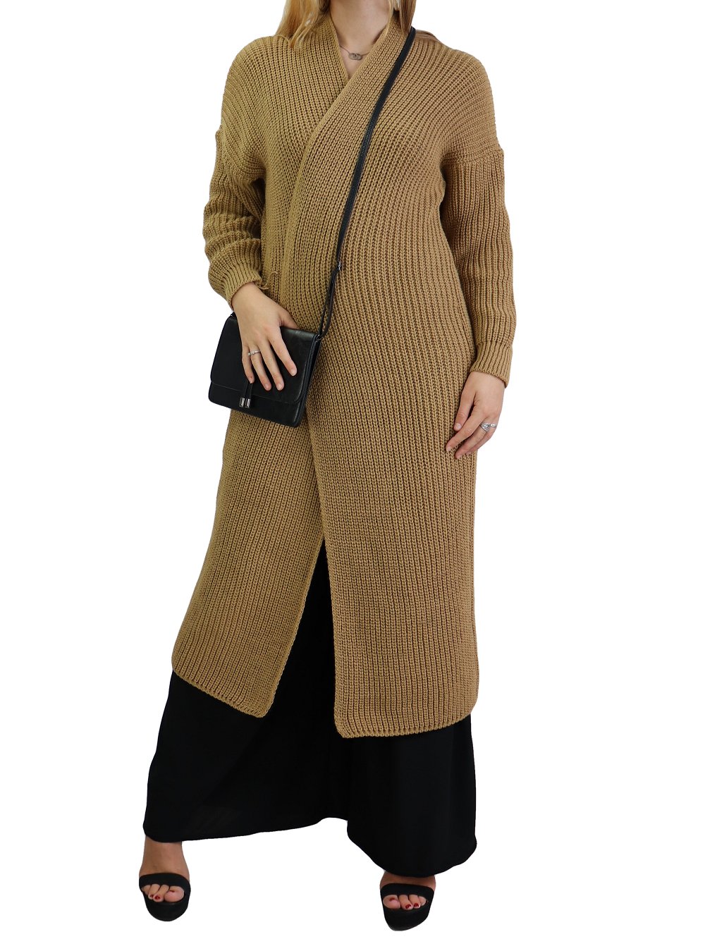 Cardigan Gilet long sans manches - Couleur Camel - REF. 33092 (19.90 €)