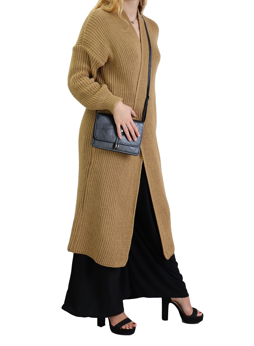 Cardigan maxi-long tricoté en grosse maille (Vêtement Hijab Automne Hiver pour femme) - Couleur bleu indigo - REF. 37727 (24.90 €)